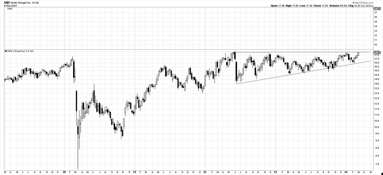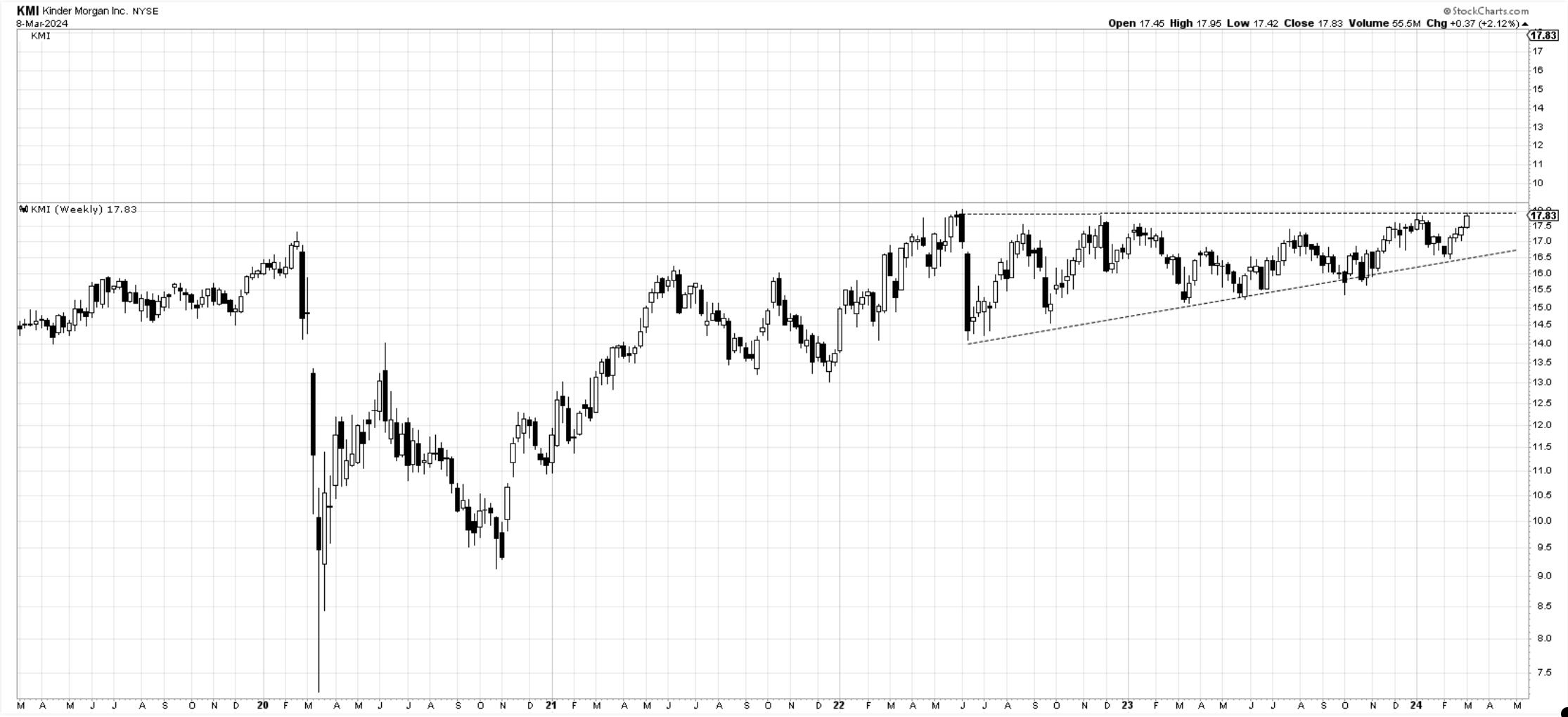 KMI - Kinder Morgan. Ascending triangle formation with the buildup of a potential breakout above $18.