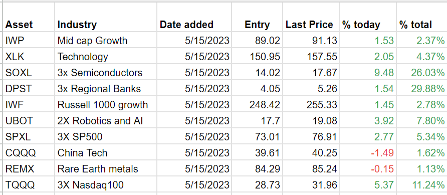 The risk we took with this ETF portfolio is paying off. As always, these will be sold tomorrow at the close, and I will send a newly updated list Sunday.