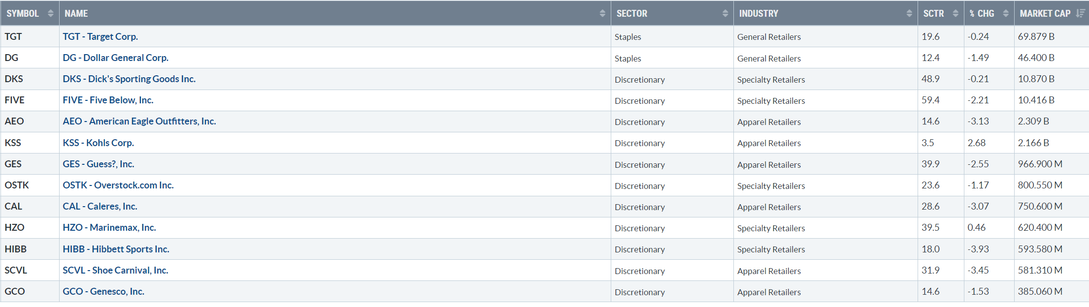If you want to dig more, here is a CSV file with 125 retailers from the US that are also optionable, from the following industries in retail. Apparel retailers, Broadline Retailers, Clothing Accessories, Footwear, Specialty retailers.