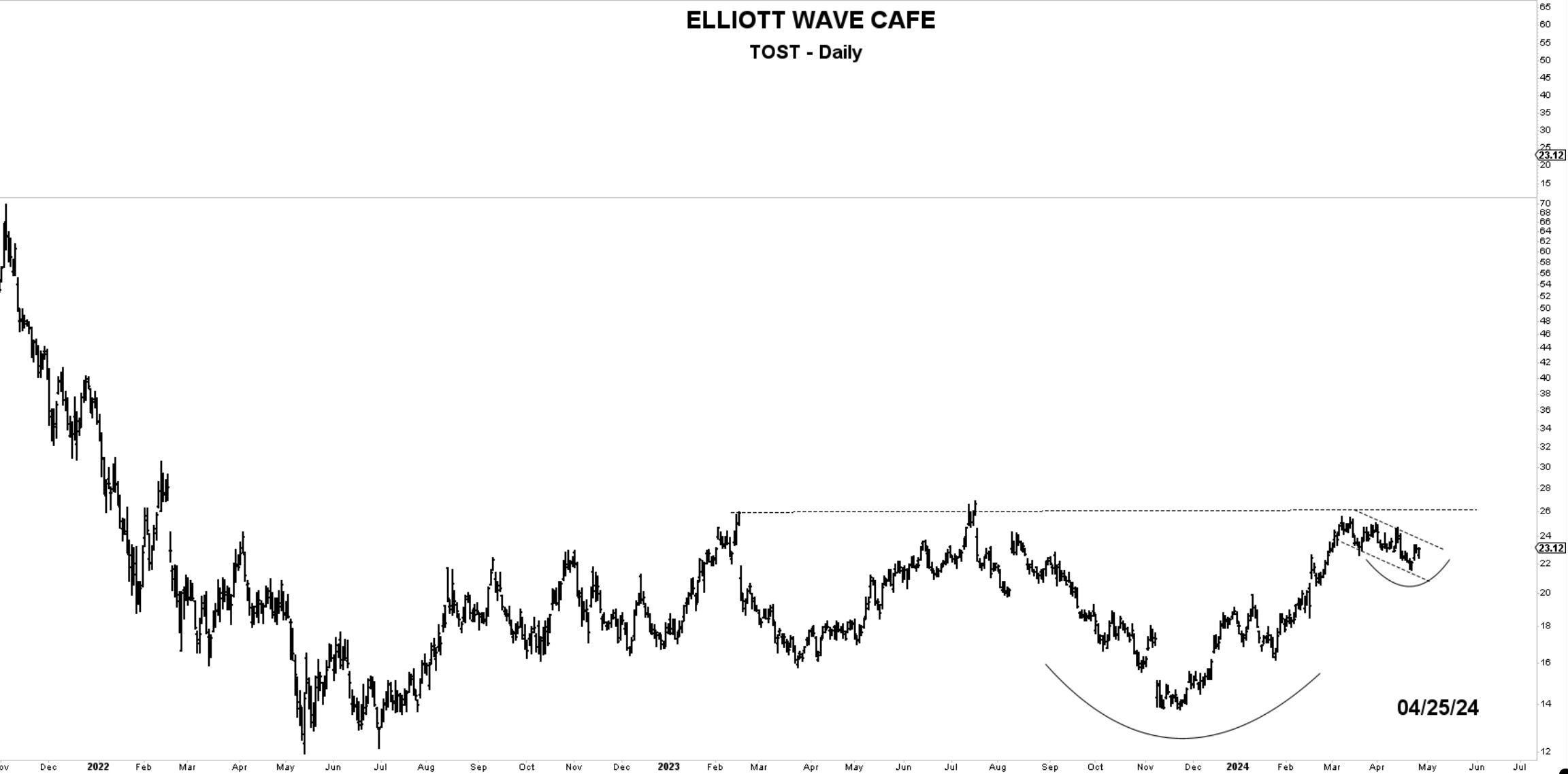Chart of the Day—TOST—Long base on this stock that is starting to show opportunities for an upcoming breakout. There are the two impulsive moves of the lows, and based on the look, it’s either a 1,2, 1,2, or 1,2,3,4 so far. I would keep a close eye on this one. I will discuss the plan of entry in today’s video.