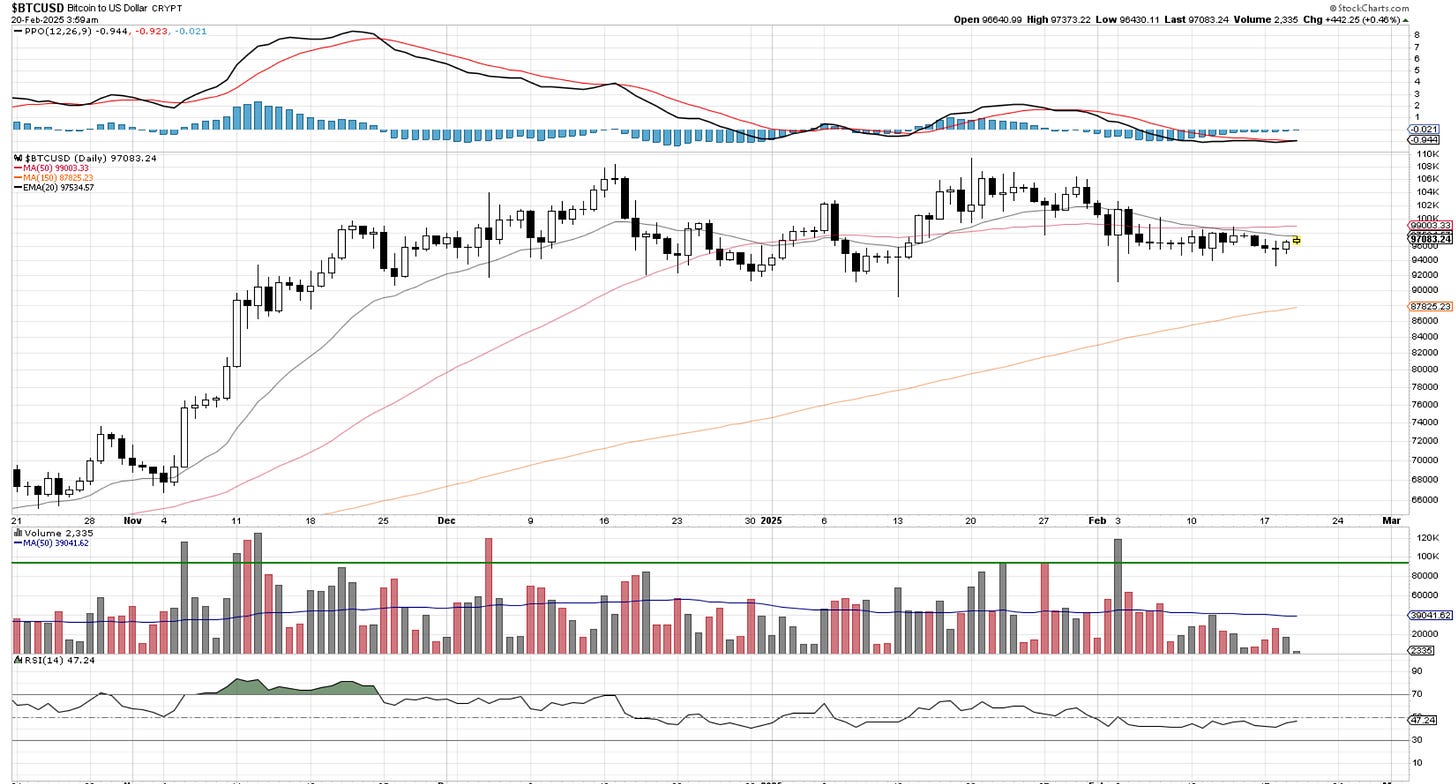 After a failed move below 94k, bitcoin is turning back and trying the 98k area once again. A crack above that zone and above the moving averages should lead to additional buying. Will join that party if it gets going.