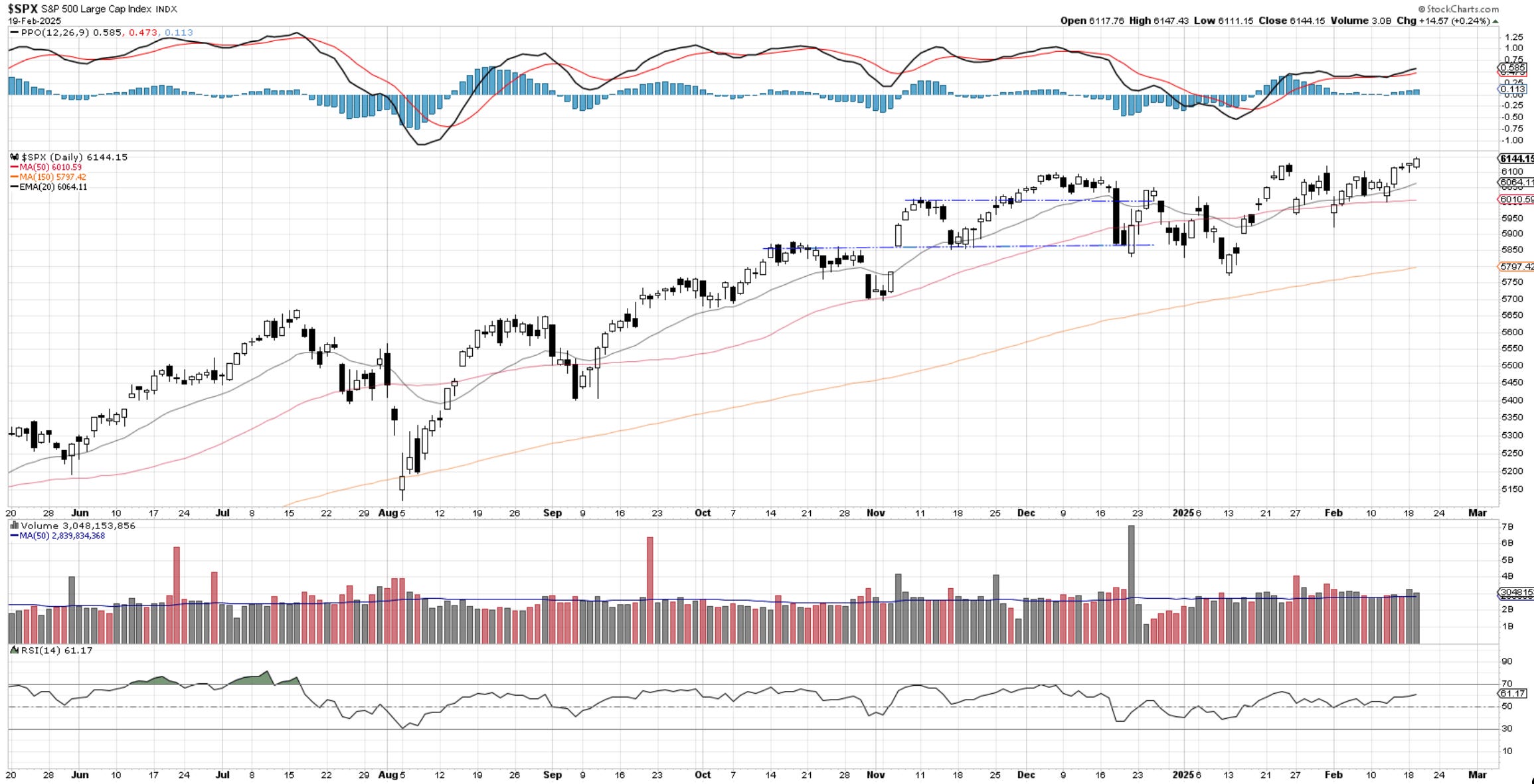 Today’s close and gains, although small, continue to feed into the existing uptrend and give further evidence that the correction has run its course. I will keep the Feb 13th candle low as the nearby line of defense currently.