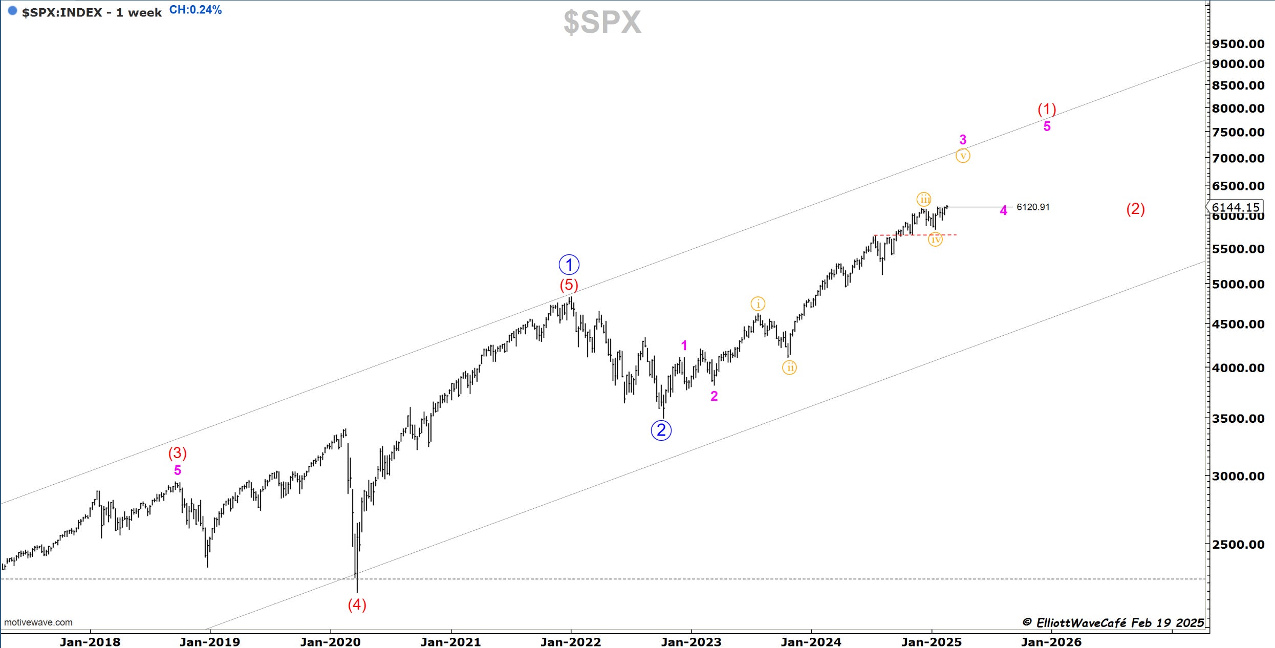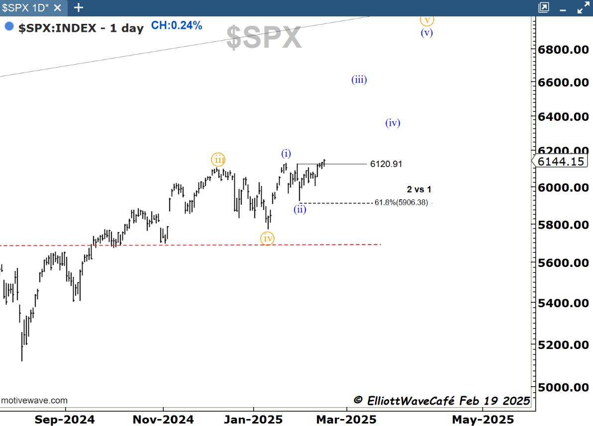 A new higher close in this index above the suggested wave (i) top creates an expectation for the further continuation of wave (iii). Not that it matters a whole lot to project things upward, but for those interested, the 161.8% of wave (i) is 6524.19.