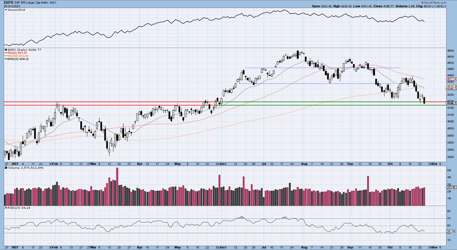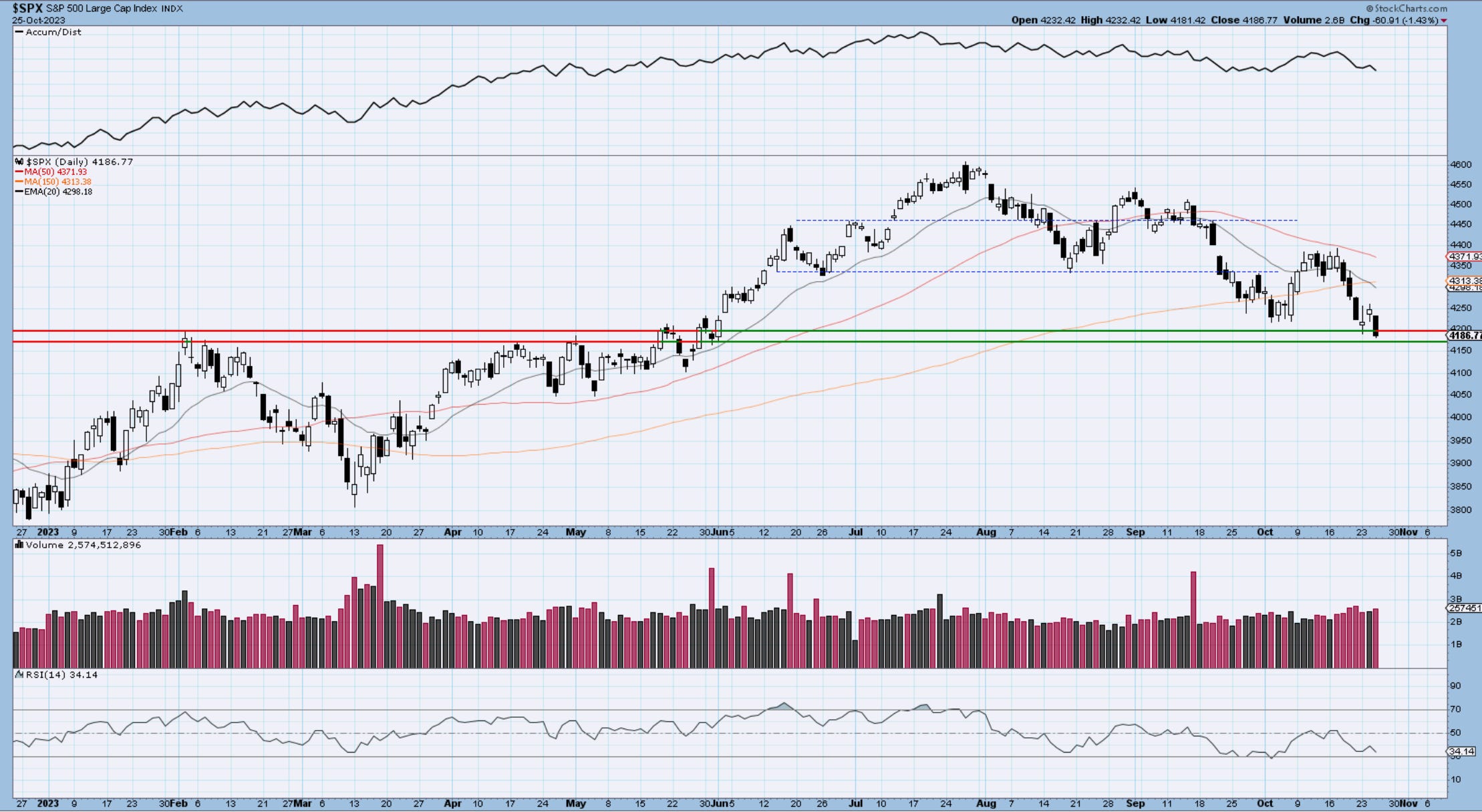 Well, the chart below displays the sp500 on a closing daily basis. While you hear about the 4200 level being broken as very important, if you look below you will see actually the closing prices from Feb 2nd and April 30th as the level the market targeted today. That’s 4180-85. The window for a bounce is approaching if not already here.