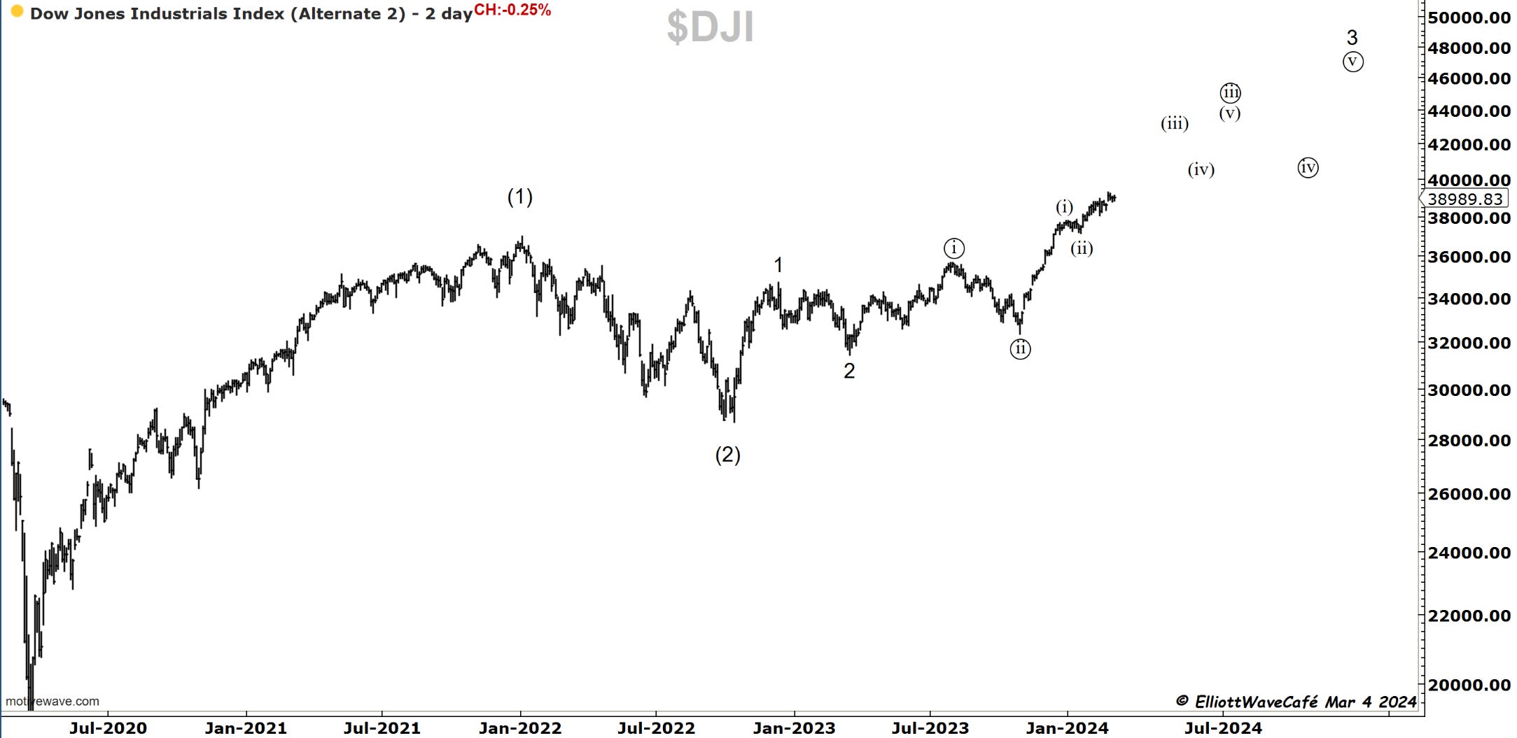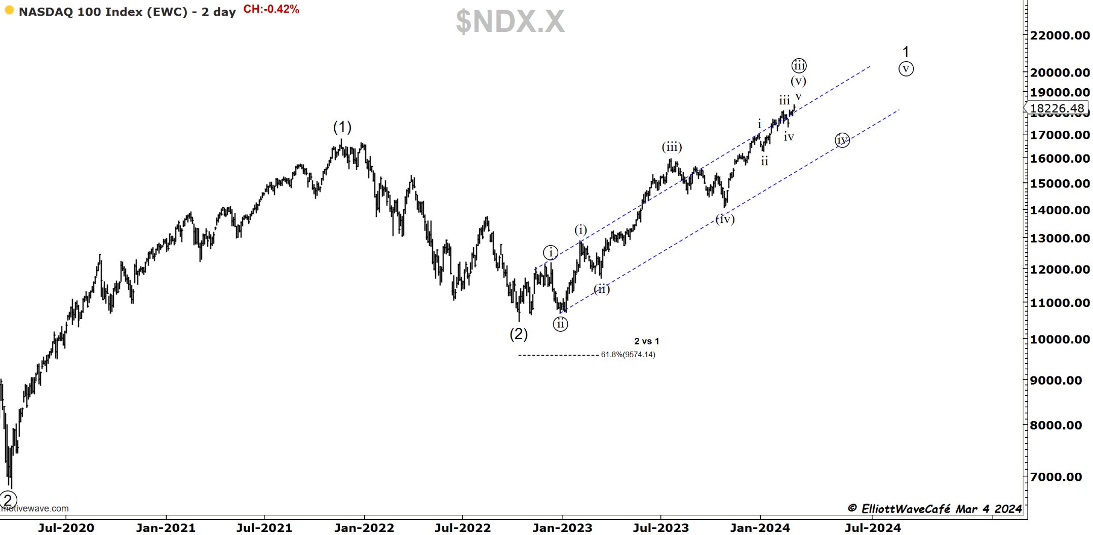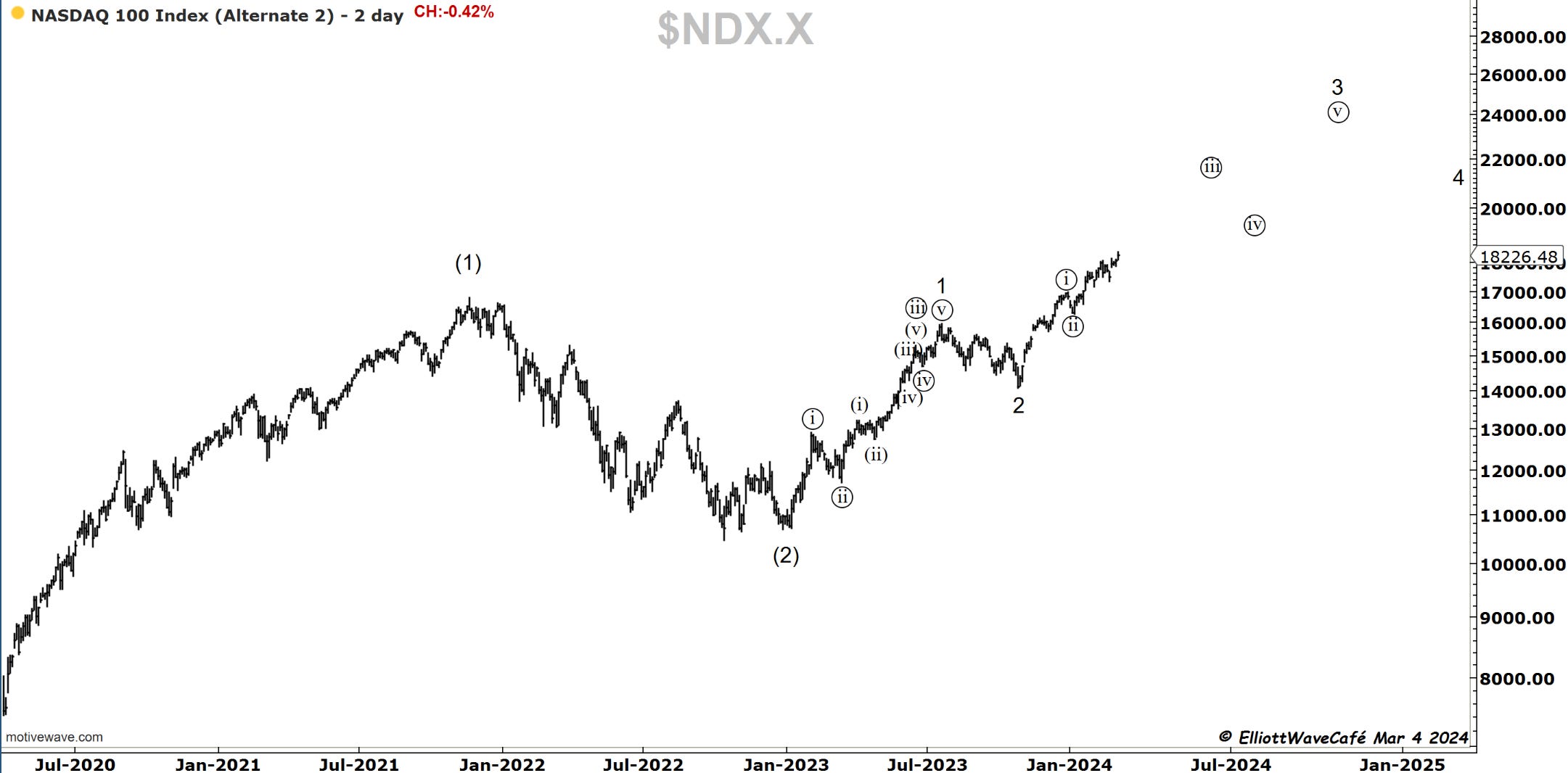 You’re familiar by now with the 2 active counts we’re tracking. I would want to see the market get below 17k to elevate the bearish version to primary status.