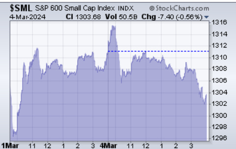 Small caps started strong right out of the gate, but then the rally fizzled out as the day went on. If it manages to remain above 200 the arguments for bullish positions and breakout remain. Below those levels, a technical trader needs to be cautious.