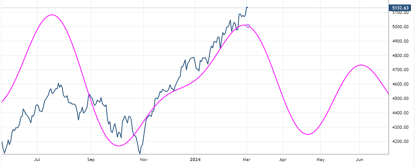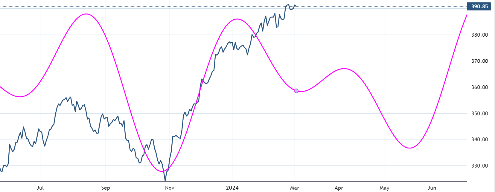 The active composite cycle of 180,124 and 80 days points to some weakness over the next 6 weeks after failing to respond at the data observed late December and January.