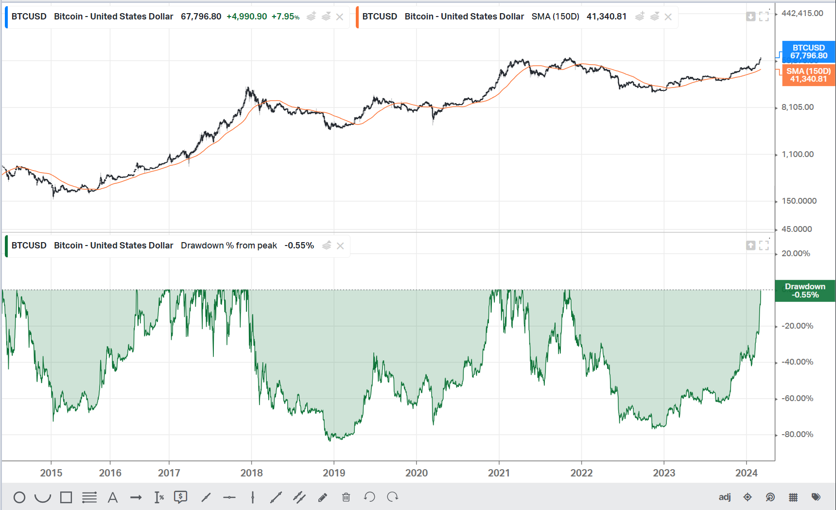 Chart of the Day BTC - It took Bitcoin 2 years and 4 months to return to ATH. The last time we had a large bear market, it took 3 years. Holders continue to get rewarded for their patience.