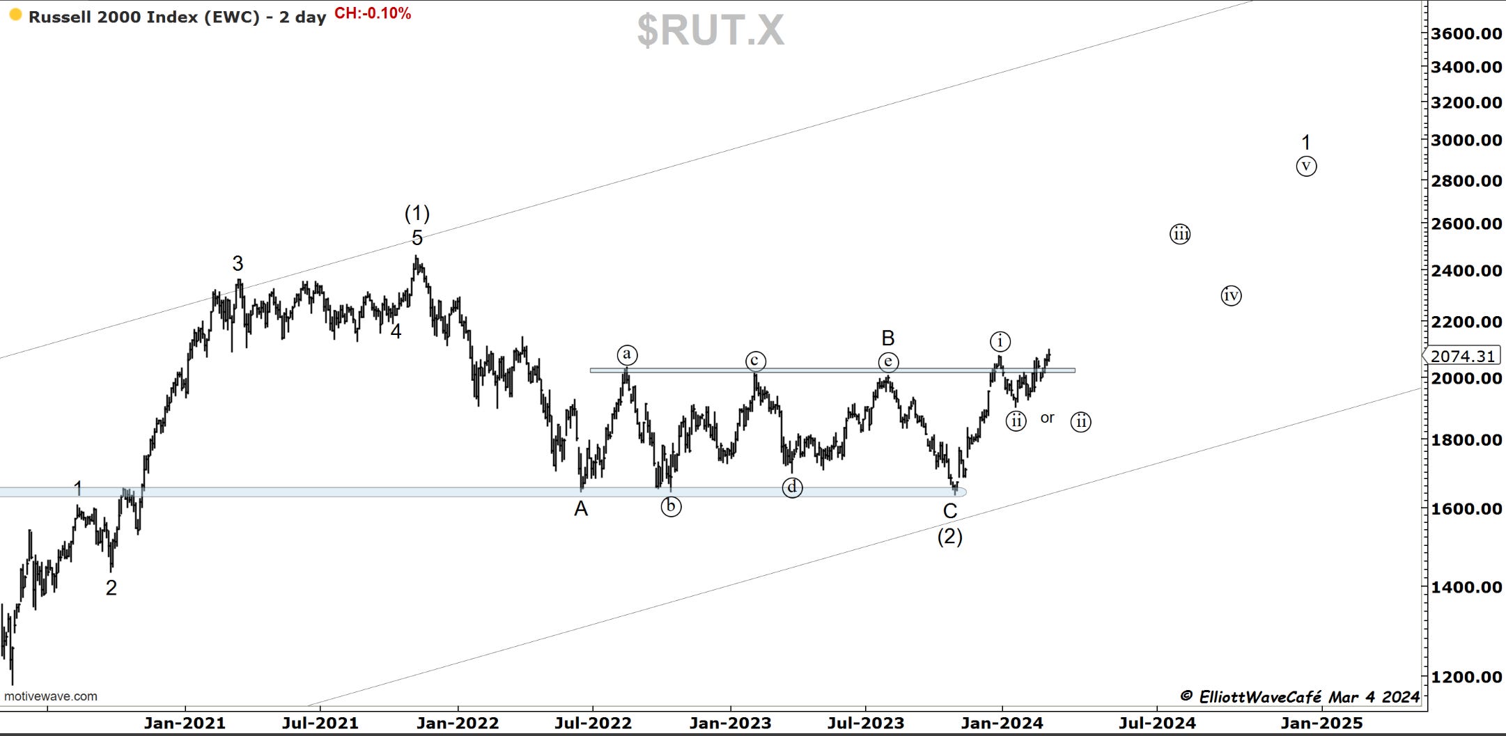 Here is the count that would have us beginning a large third-wave upside rally towards 2500.