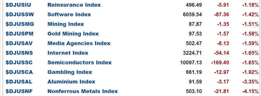 Yields have now corrected 38% of the rally from the spring this year. 4% is a key level that probably does not get broken before a rally here gets underway. The odds of a move back towards 4.50 - 4.60 are getting closer with each passing day. Rate-sensitive stocks and sectors won’t be happy.