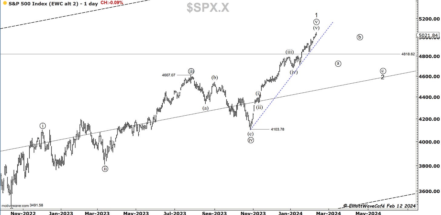 Even with a bit of a selloff later in today’s session, there is not a significant change in the character of this market. The bulls are enjoying a series of higher highs and higher lows, along with a trend established above the key moving averages and trendlines. Stocks like NVDA are being praised on financial networks as they can do no wrong and “every day it’s going up.” It does feel a little “frothy” out there, with stocks like ARM climbing over 100% in a couple of days. It‘s at times like this when wave five behavior is taking over.