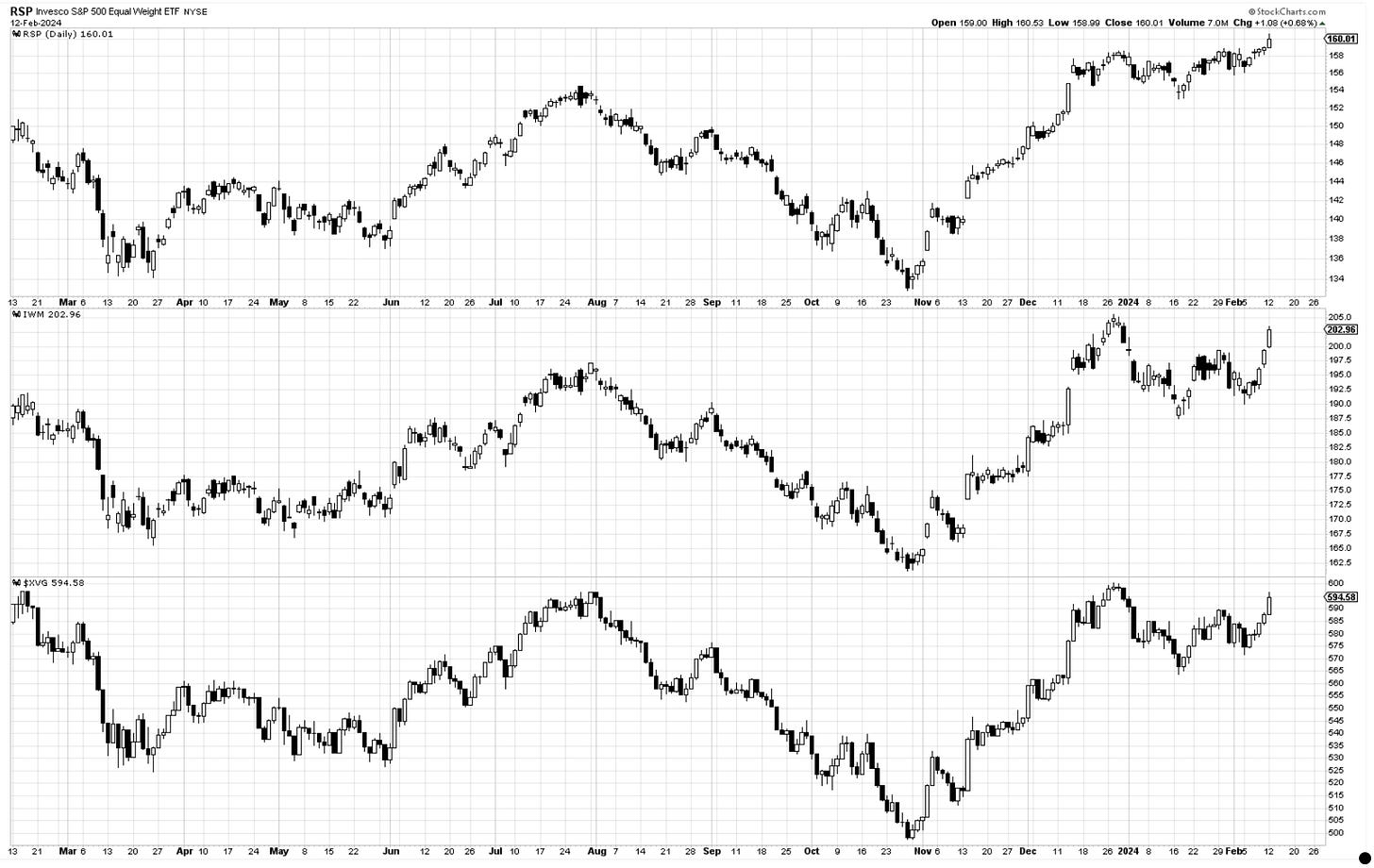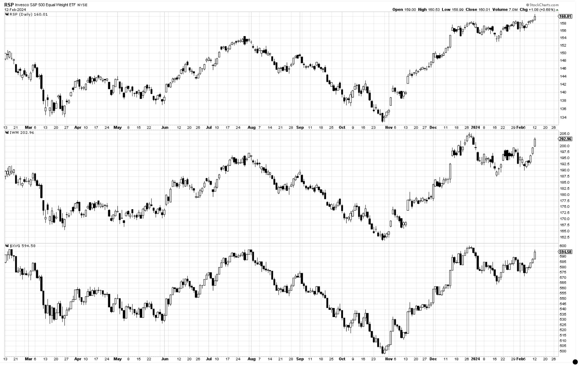 In the positive “rotation” column, we can see a bit more participation from small caps and equal-weighted indexes like RSP and value line XVG.