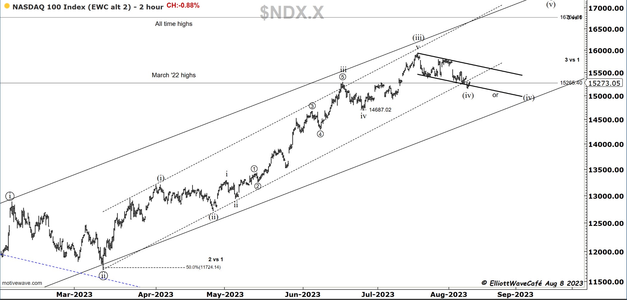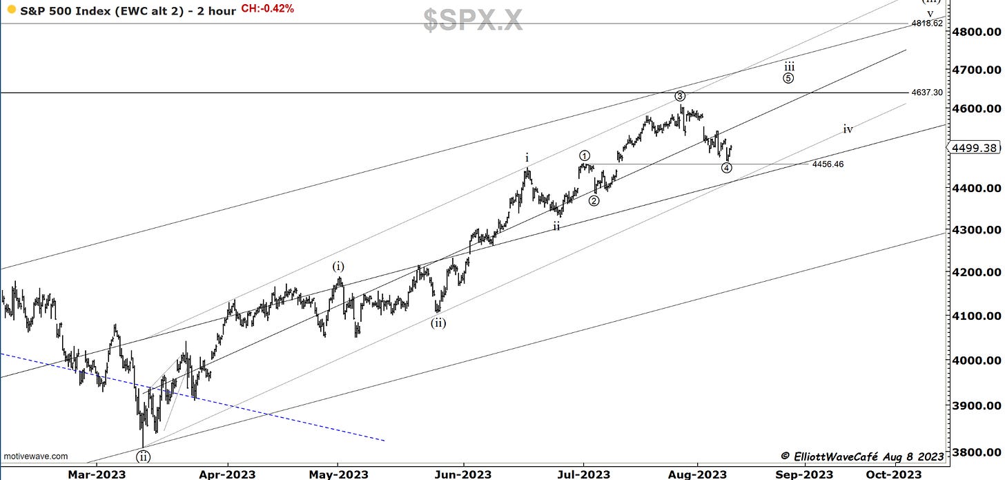 Quite interesting that even with today’s drop the wave ((1)) territory has not been penetrated by wave ((4)). Good bounce into the close, showing an appetite still to buy this dip. The daily cash charts left a small tail behind, let’s see if it gets negated tomorrow or has the power to continue higher. It’s a green shoot. We’re looking for a move above 4600 next.