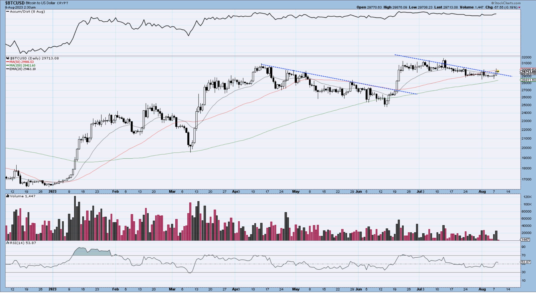 A quick attempt to rally that seems to have faded away. I like the crack above the channel but as I said in tonight’s video, there is a risk of this being a flat with another move ower to come. The larger structure mimics the one from May/June, has a corrective look and should resume higher. I would like to see a break of 30,500 to get excited about adding to longs. Check out the Double Shot for more details.