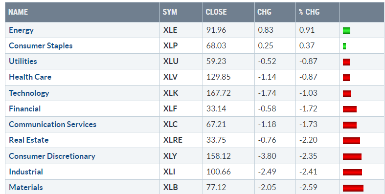 A day of running to safety was displayed in sector performance as well. The top 4 are mainly where you hide during storms historically.