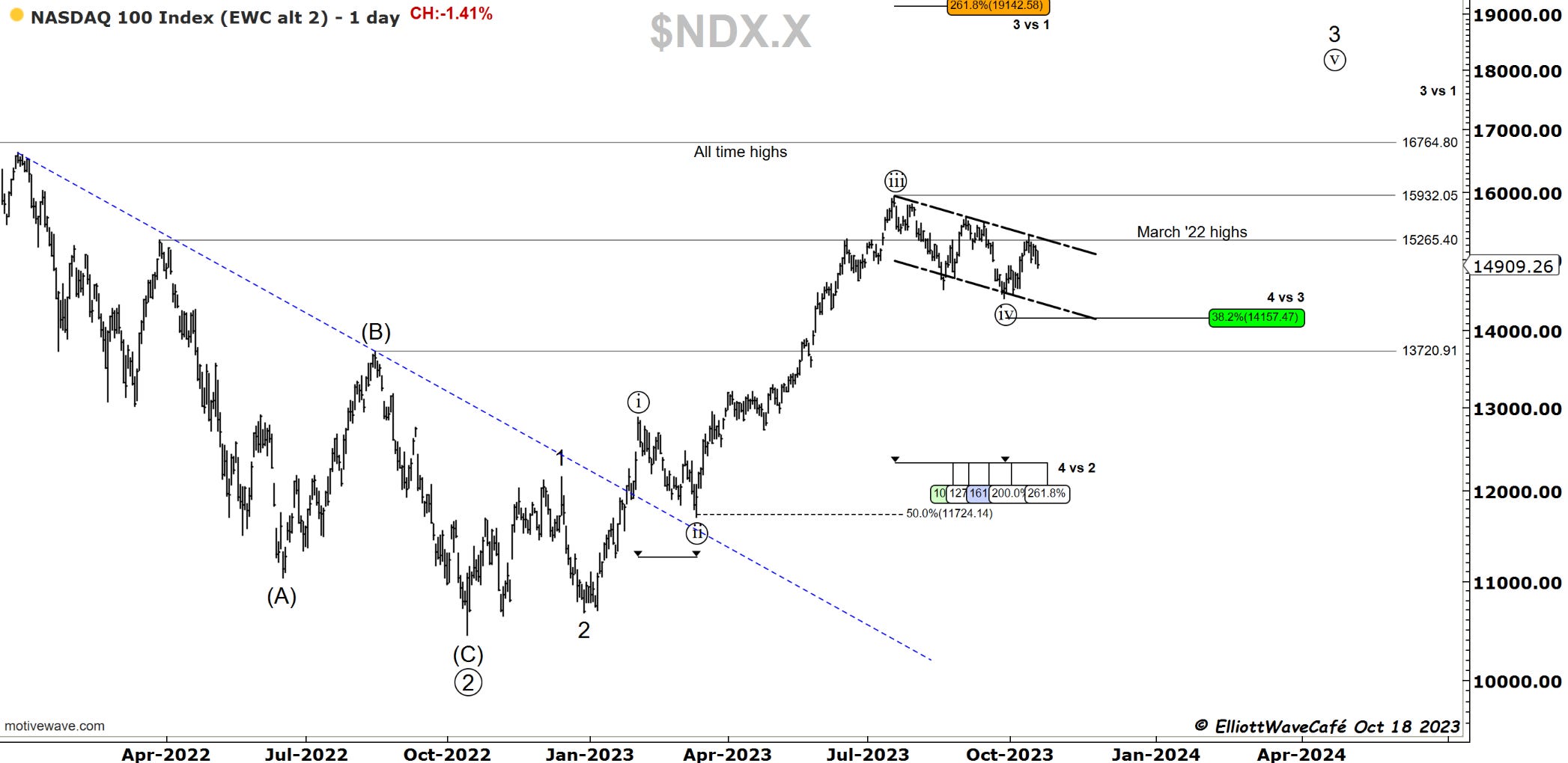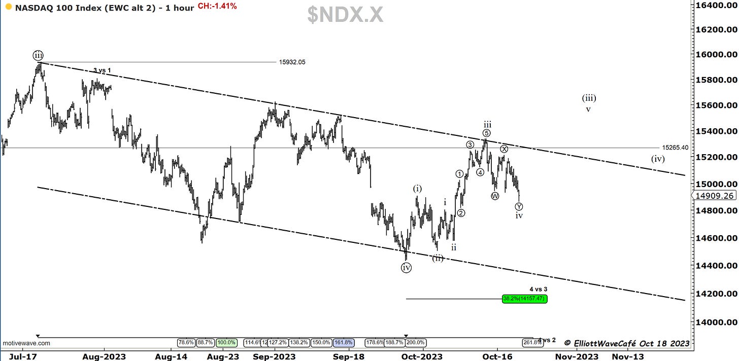 Let’s keep in mind the perspective from the Daily charts and the larger count and why I see this move as corrective against the larger impulse. There is always a chance that wave ((iv)) can grow more complex. I rather it would not since we’re about to enter a period of strong seasonality for equities.