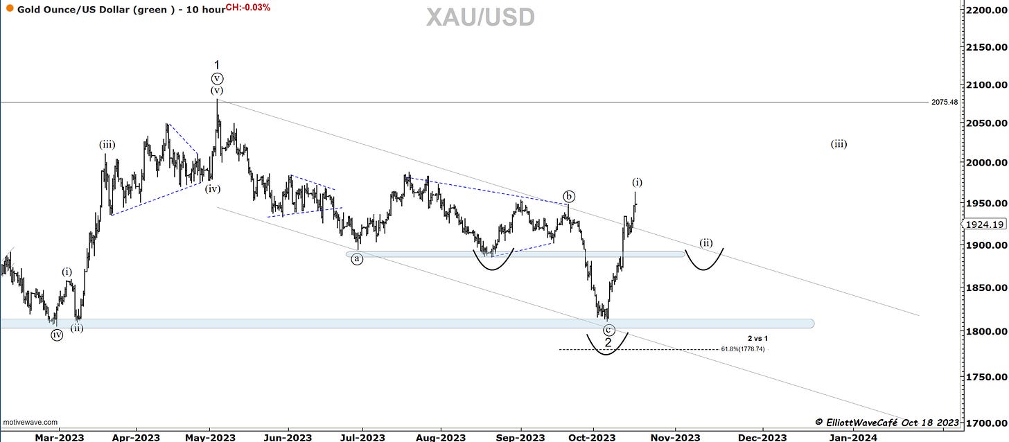 There’s got to be a message that Gold is sending here. The rally was extremely strong and pushed this wave (i) even higher. It’s ignoring yields and it’s ignoring the dollar. That weekly chart formation in the second chart is looking scary bullish.