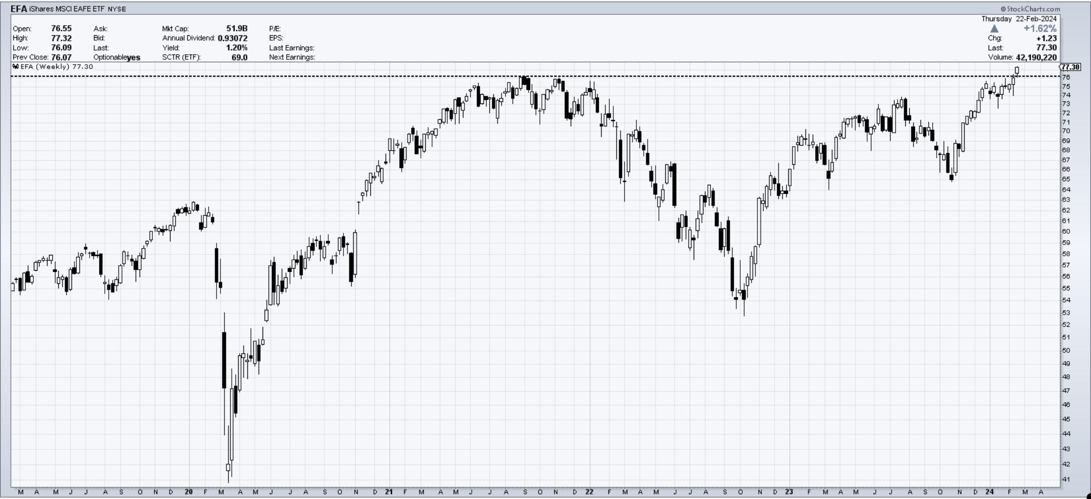 Chart of the Day EFA 0.00%↑ - Breakout in full force. This is an index composed of large- and mid-capitalization developed market equities, excluding the U.S. and Canada.