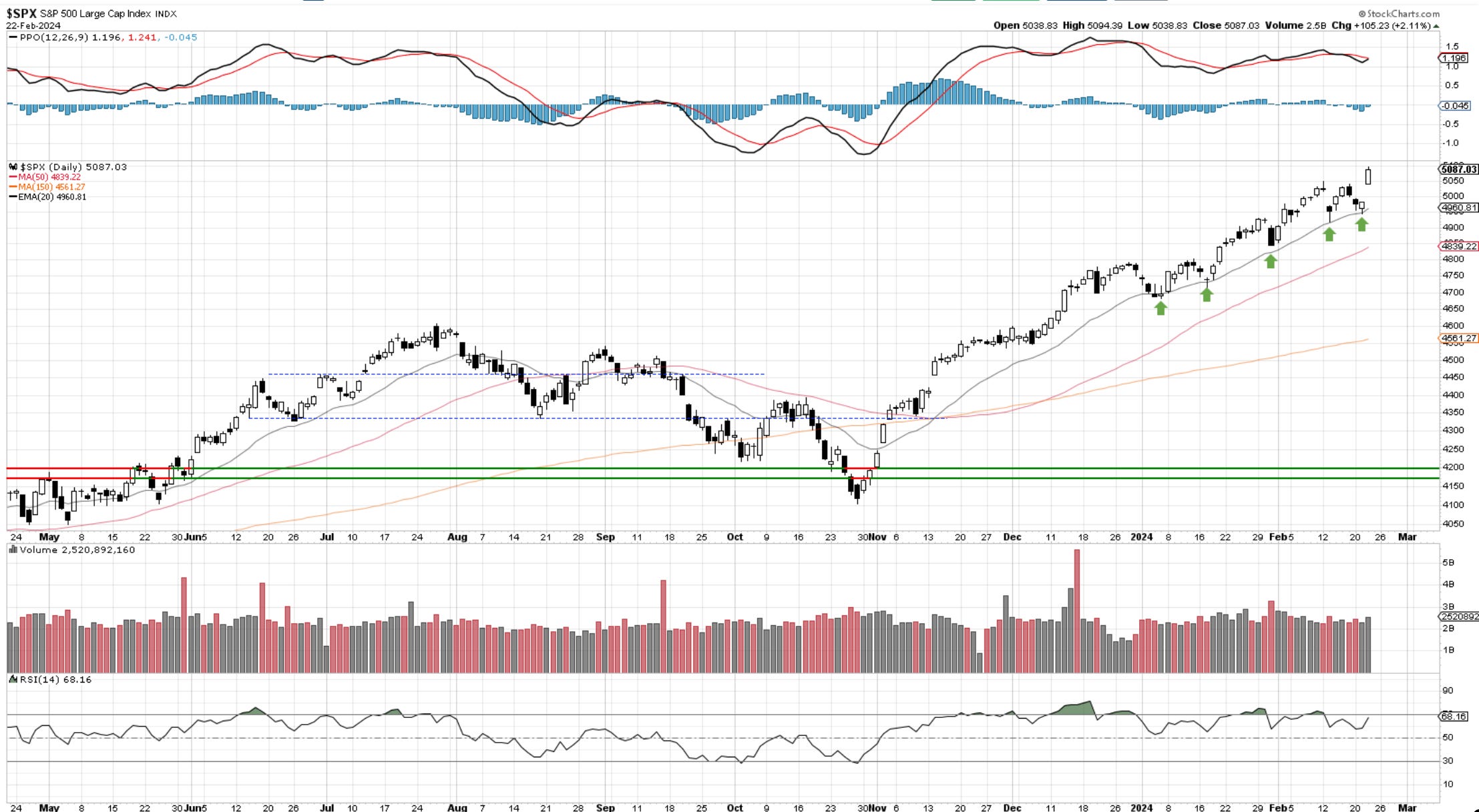 You can’t keep a good market down. Whatever NVDA did to lift the rest of the boats, it worked. Breakouts once again occurred across the board. It’s becoming harder and harder sitting here and labeling a correction while this market relentlessly continues to make new highs. The trend tried to get interrupted, but it failed to do so. The 20-day MA continues to drive short-term momentum, supporting all dips.