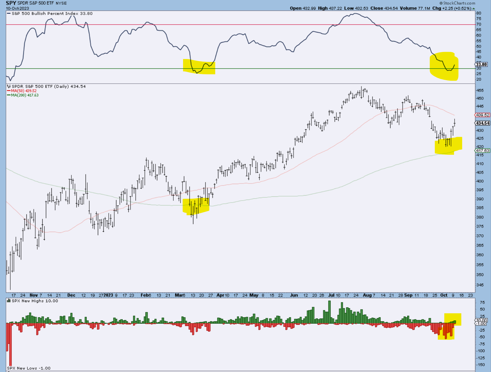 We were discussing last week the BPI and the increased chances of bounces from 30 levels. There was also a washout in 52-week lows, I am assuming most of them were in the staples sector. We’re about to hit the 50-day MA, so expect things to get a little tougher nearterm, but overall we should be bouncing back towards the top of that range.