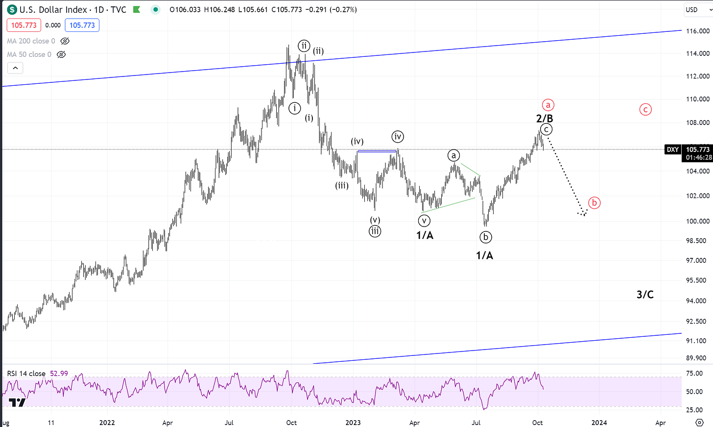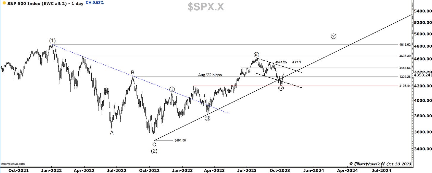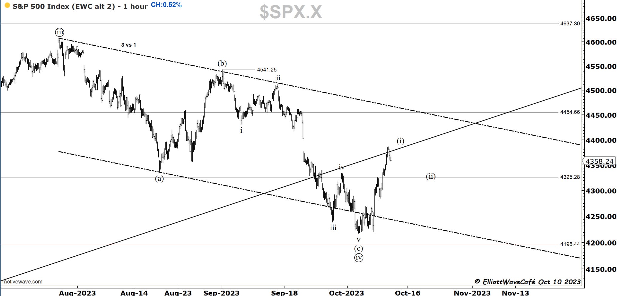 A 50bps rally today sent this index higher continuing to form a wave (i). Wave (ii) should offer the next opportunity to join the long side for a larger wave (iii). 4325 is now the level to watch on throwbacks. Wave (iii) will take us to challenge wave (b) top near 4540.