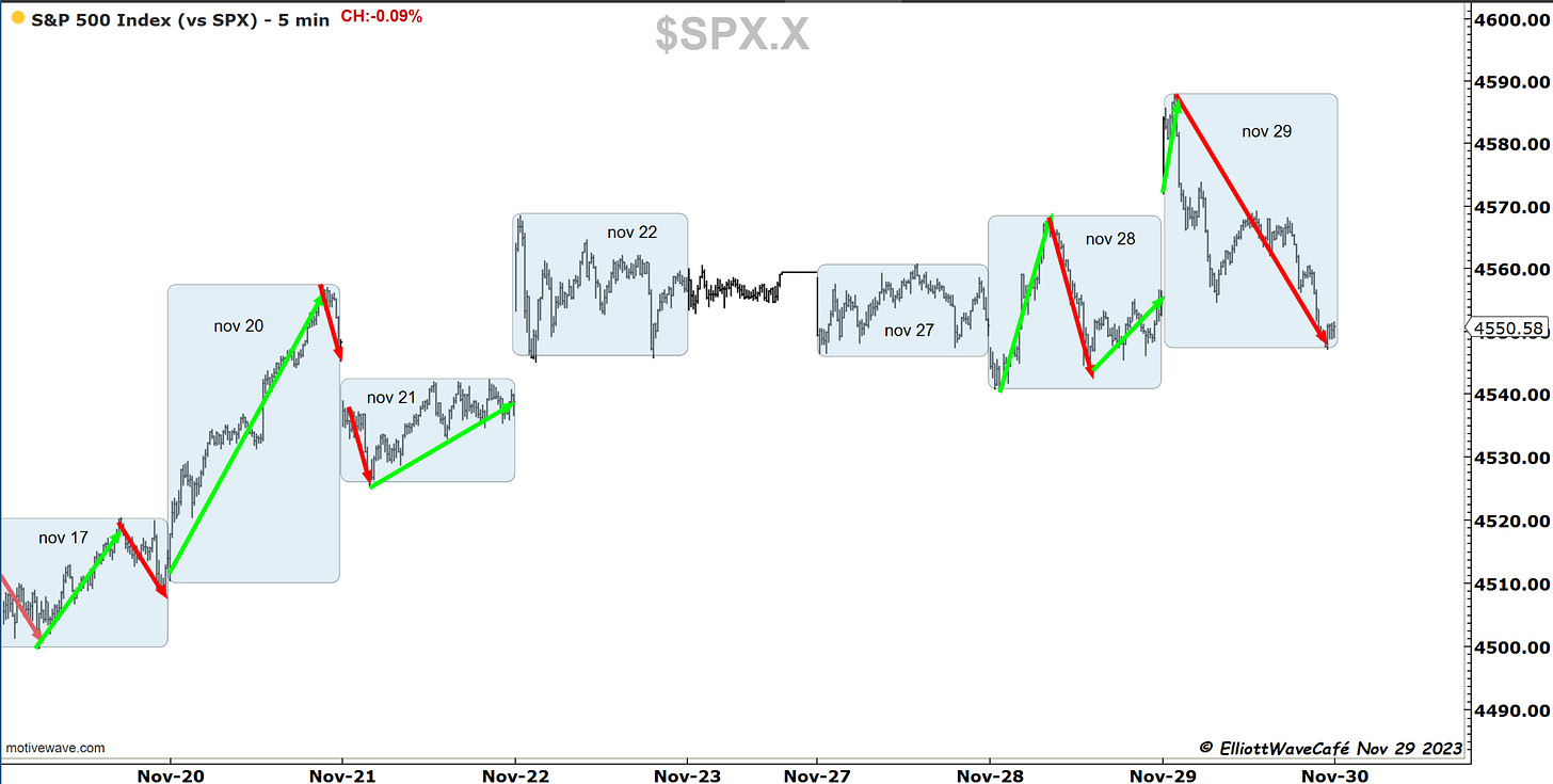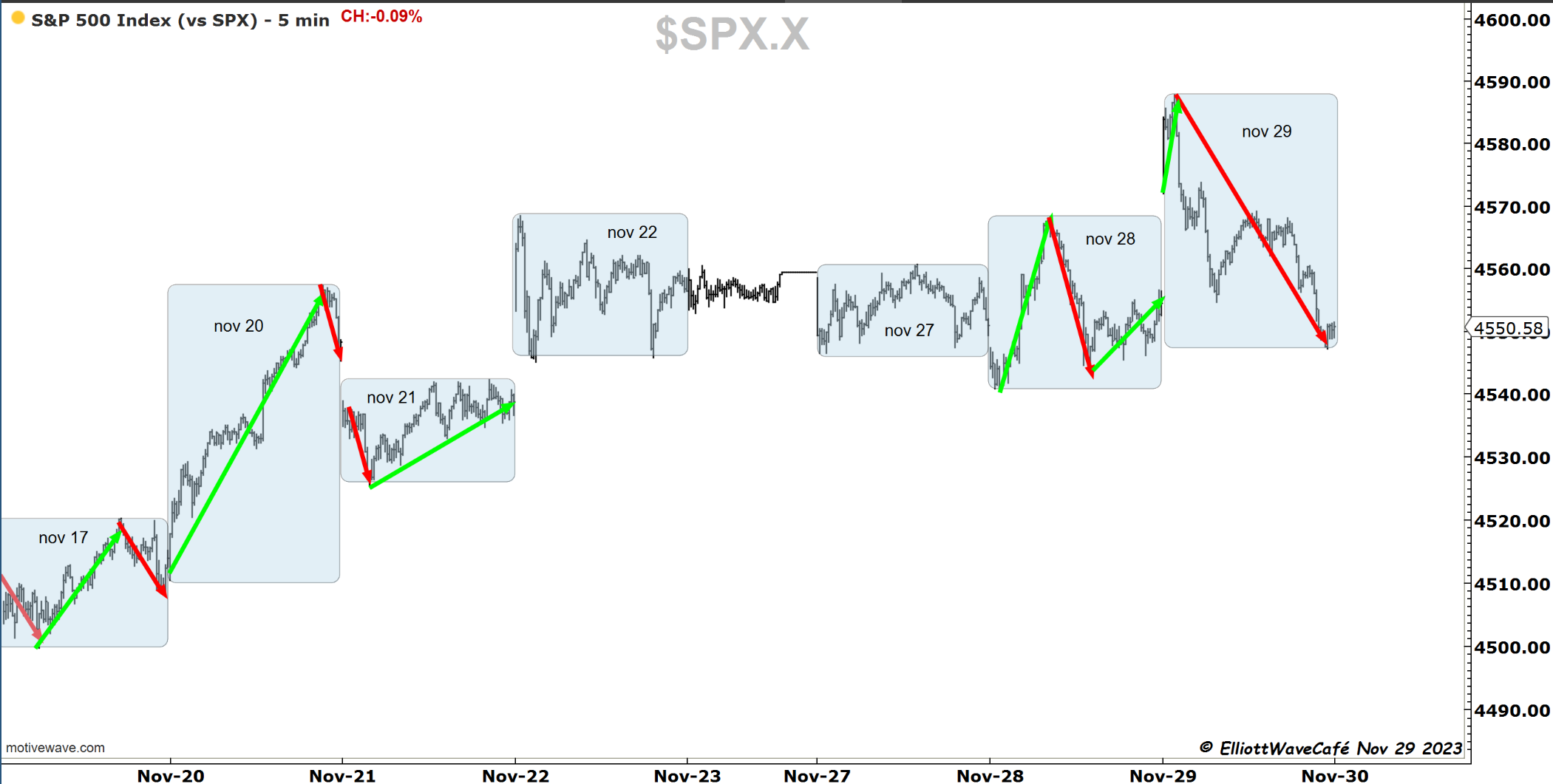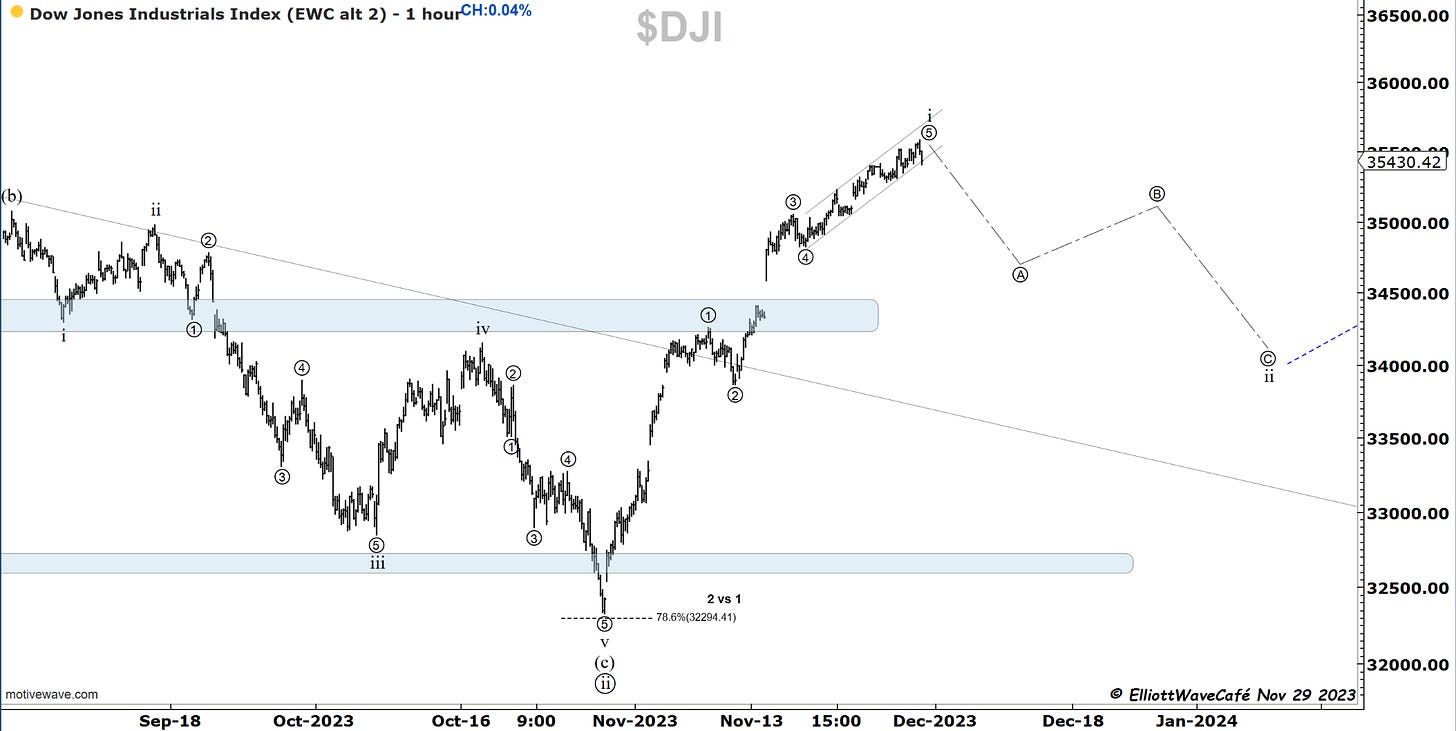 My take here is that if this correction is starting, then the only Santa rally we will get will be a (b) wave. The pundits will cheer it on, but we will know what’s behind it.
