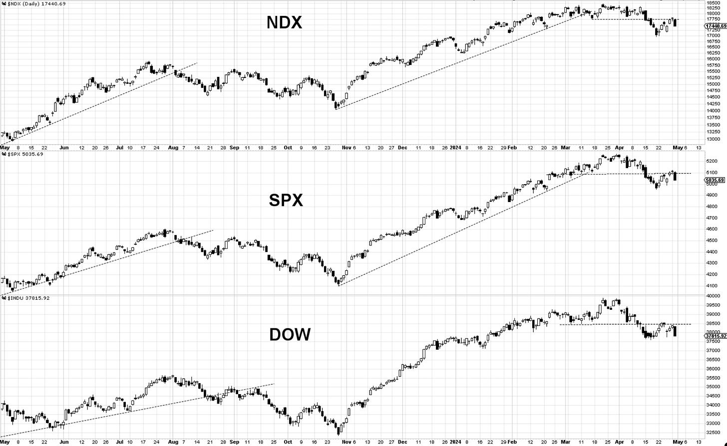 Bottom Line: In yesterday's note, I mentioned this: “Any move below last Thursday’s closing high will raise upside failure concerns and point toward safety once again”. Today’s selling sent the market below those levels and elevated the downside risk. A break below the April 25th lows will confirm the three-wave move and likely open the door for lower prices. Paring back risk exposure is suggested until the rejected levels below are recaptured.