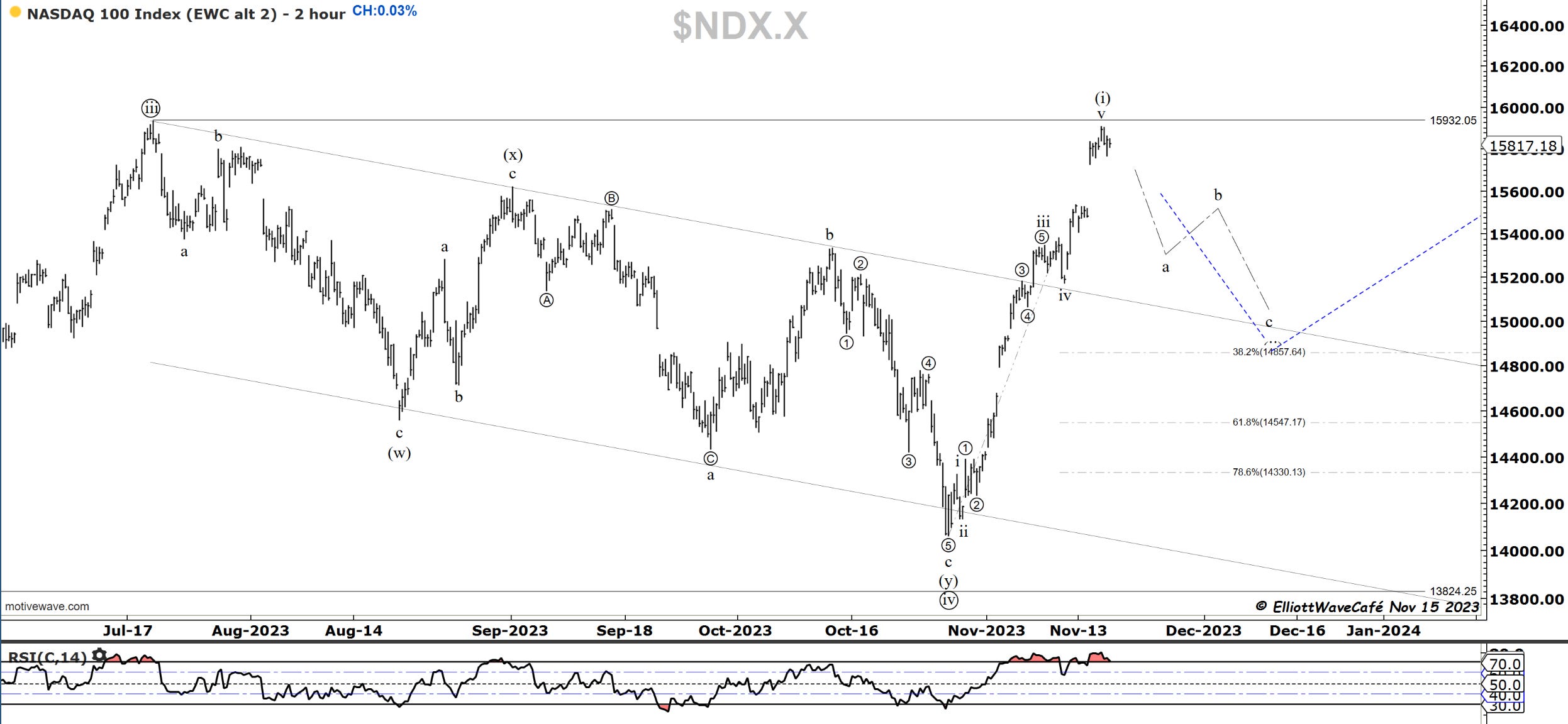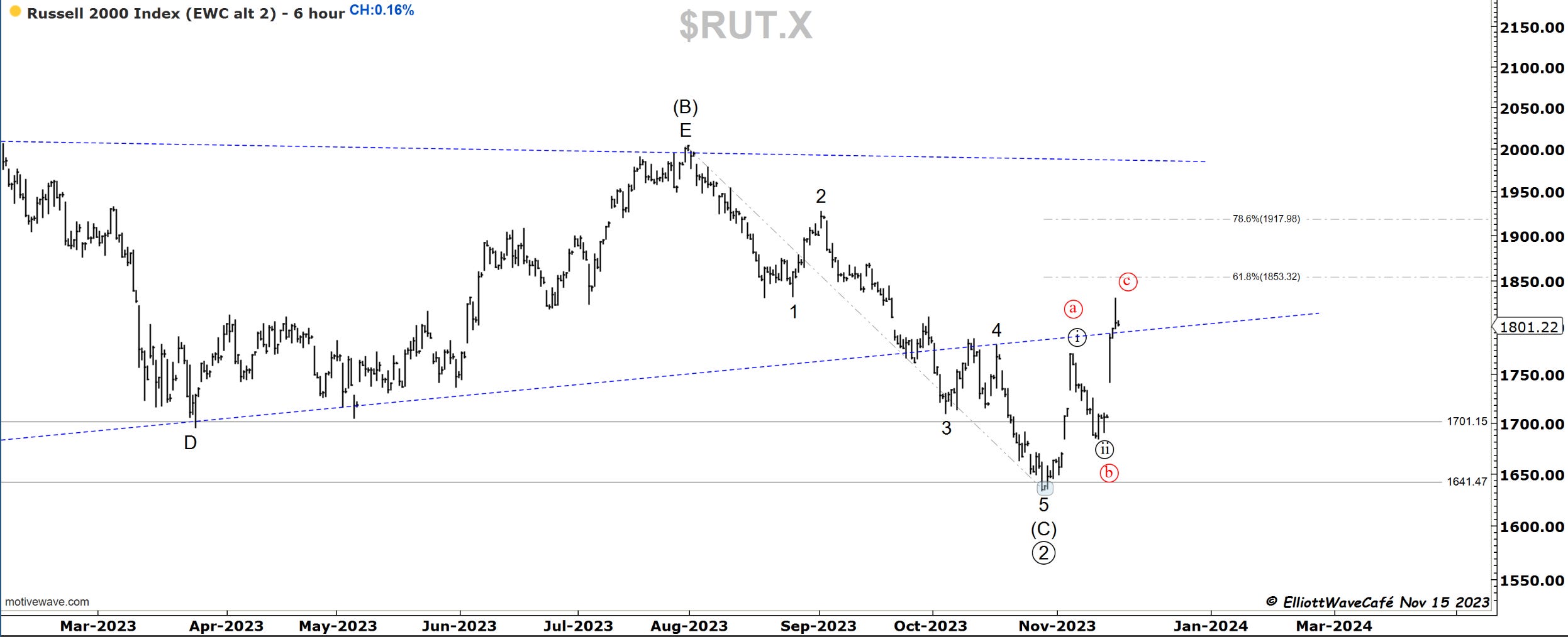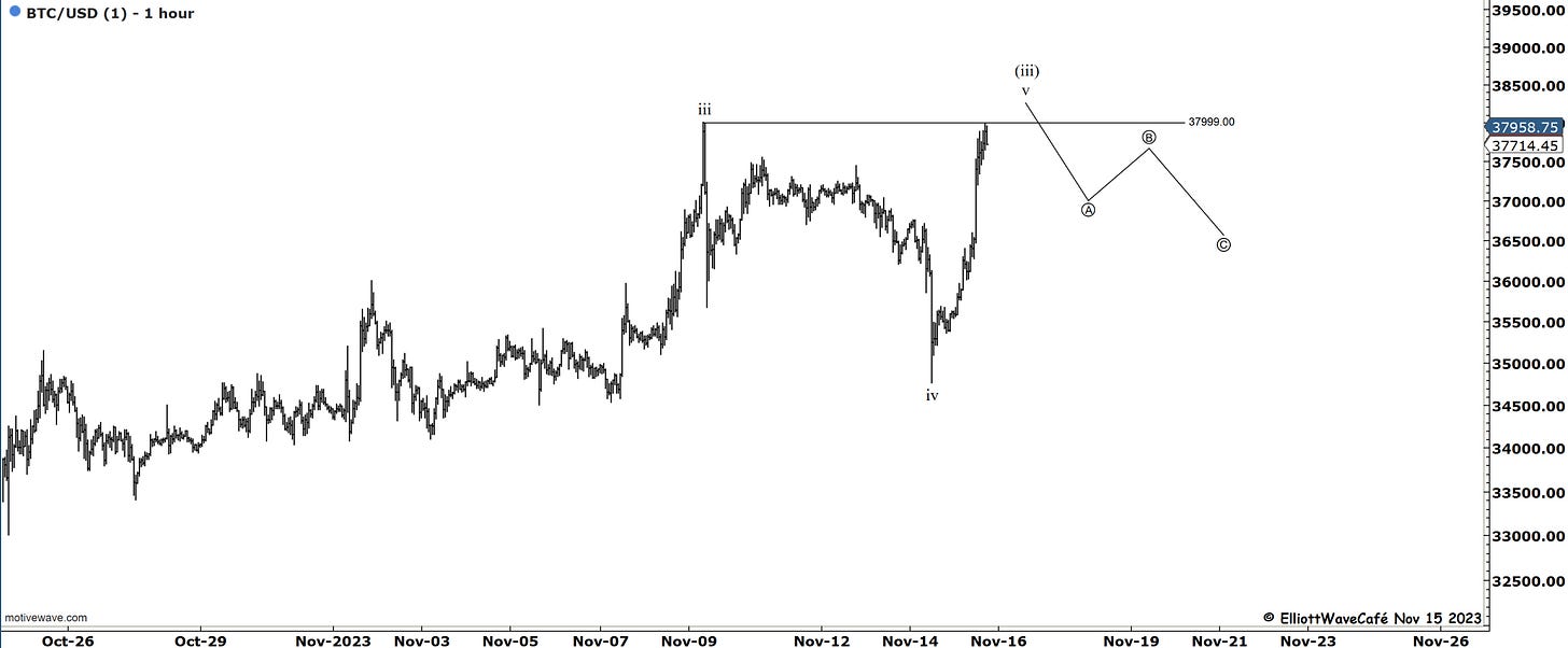 This index closed flat on the day, while the futures that close an hour later than cash, closed negative 25bps. My focus remains on that wave (ii) throwback for a percentage of the entire rally. At least 25% if not 38%.