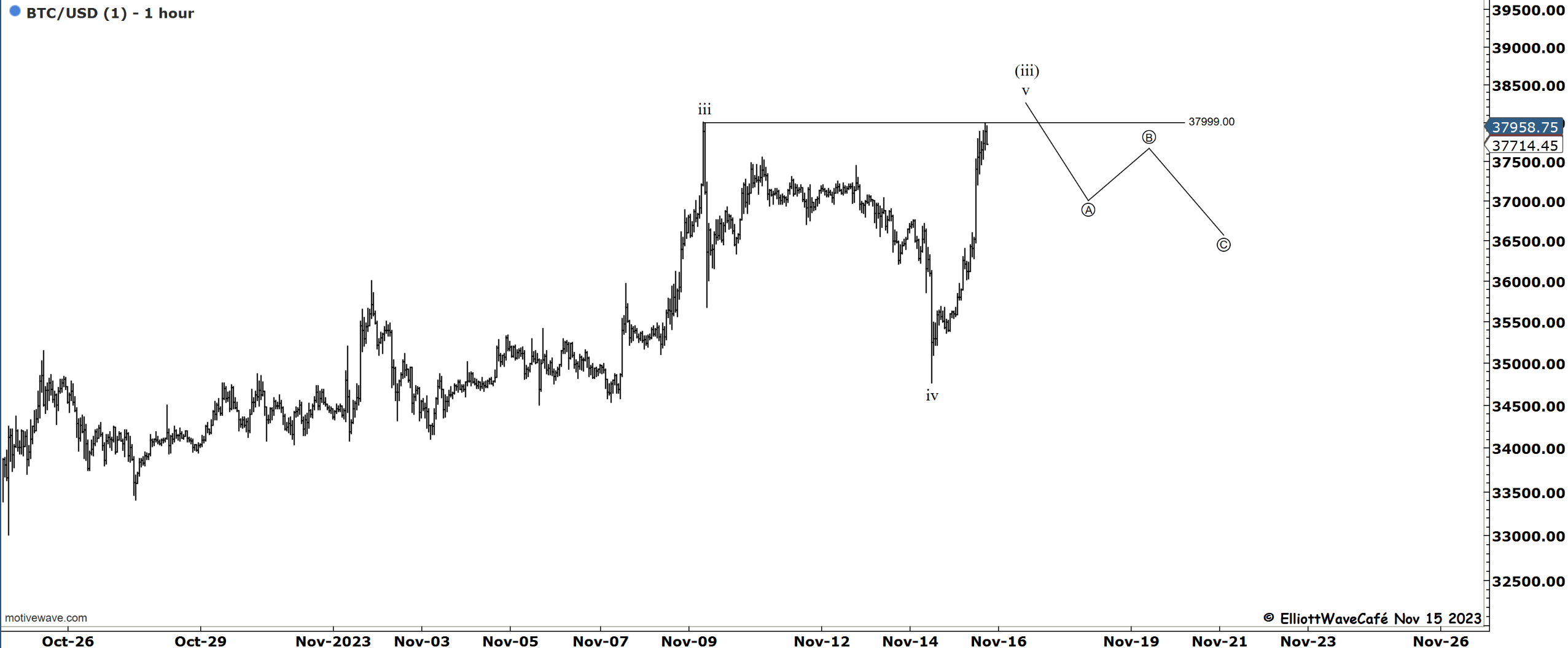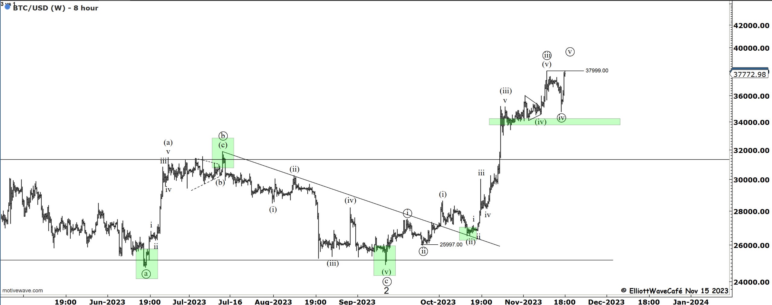 Here is the (i) (ii) idea with a kiss back towards the broken trendline before a larger wave (iii) can ensue.