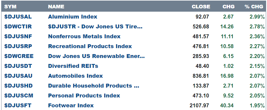 Here are today’s top 10 best performers out of 104 industries.