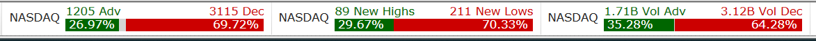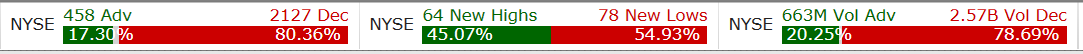 In the Nasdaq composite, we had about 3 times as many declines as advances, with the market closing down -0.17%. It has been about nine days now since this index was able to stage anything significant. My count remains focused on the completion of a wave (v) to be followed by a correction towards 16000. A higher high and higher low tape continues to be well defined.