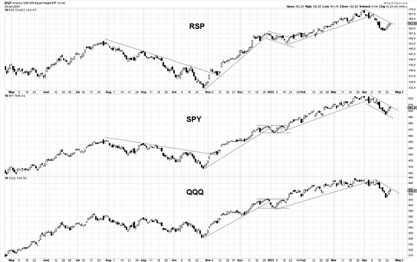 Bottom Line: With heavy earnings hitting the tape these couple of days, markets are stalling just below resistance levels, waiting for further catalysts. Two days of buying brought some short-term relief, but reduced long exposure is still suggested until more proof is brought forward by the price action. During extended corrective phases, rallies are quite prone to failure due to a change in market character.