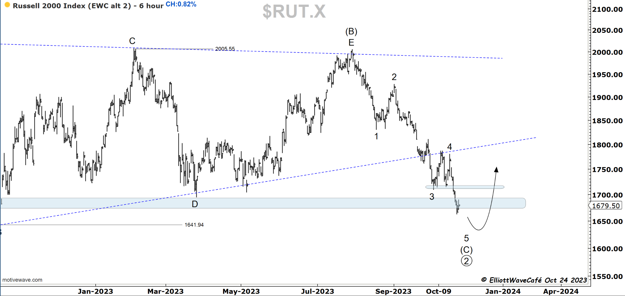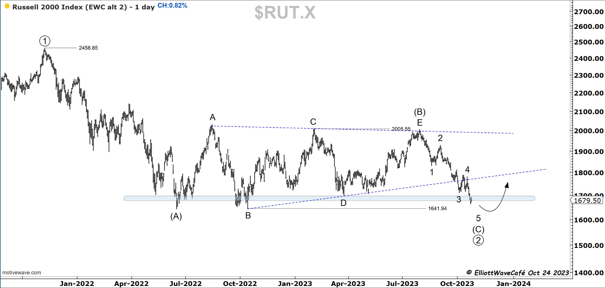 Russell remains quiet from this support, staging a +0.82% advance. It needs to crack back above 1800 to secure the 5wave decline. 1730 is the first major hurdle ( second chart).