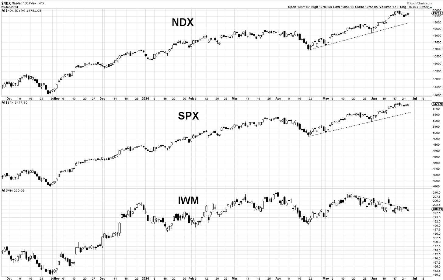 Bottom Line: There have been no significant changes in the trend direction, which remains up. The past two days were tight, and the lack of upside follow-through is slightly concerning. It has been five days since the all-time highs.
