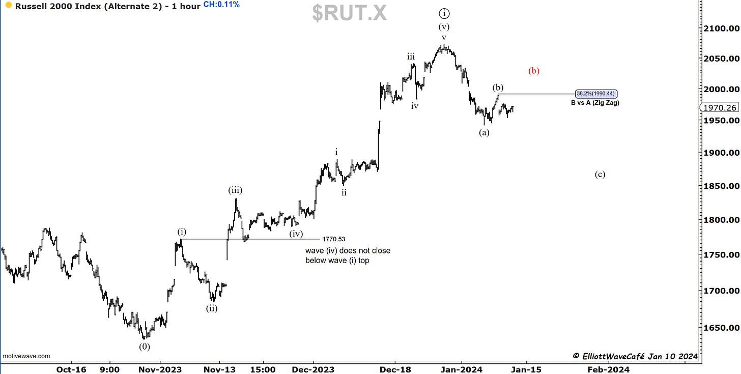 Small caps barely budged today and were negative for the most part. The excitement about this area of the market has dissipated. The count stands and has increased odds of developing further as mapped out. I would like any potential rallies to remain below 2020, which would be the golden fib of the decline.