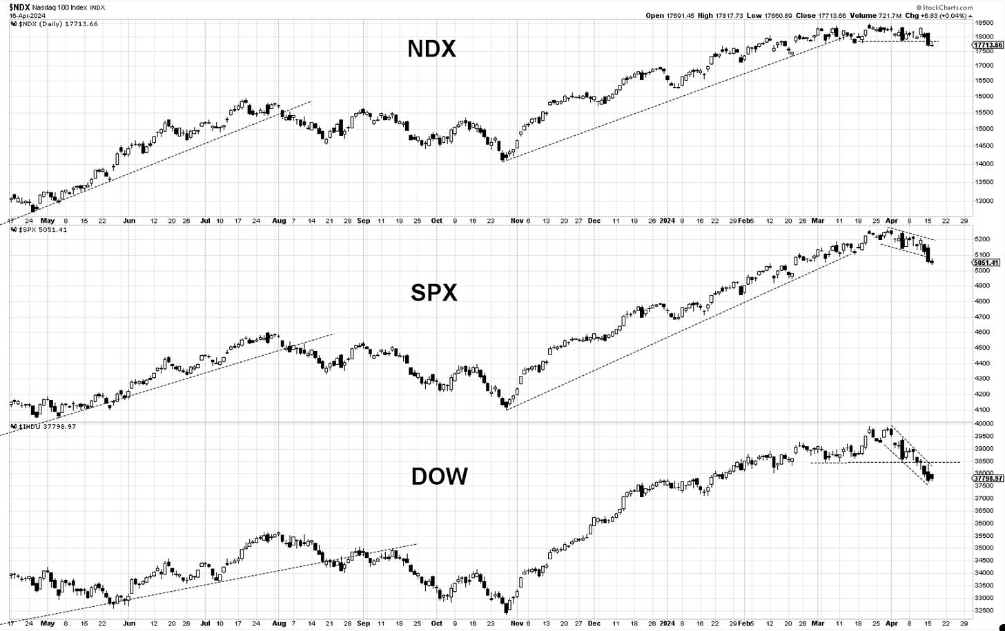 Bottom Line: Today’s losses in the indices were minor, but the price action remains weak, and there is no visible reason to press the “increasing exposure” button. All markets are trading below their 50day MA. Caution, profit-taking, and position reduction are the name of the game as of right now. I will be discussing here once there is enough of a shift in chart structure to warrant a switch to increased bullish exposure.