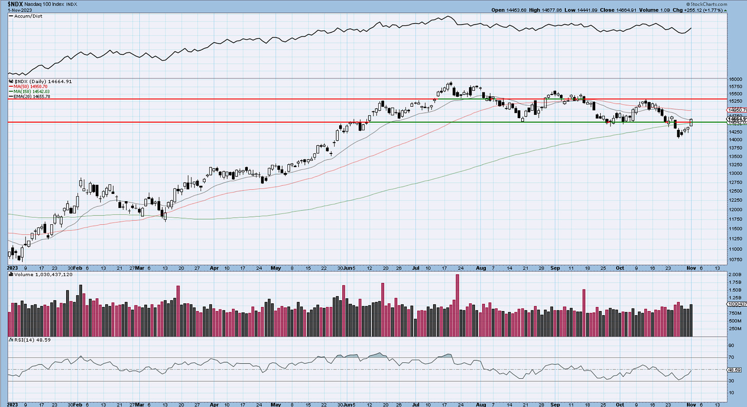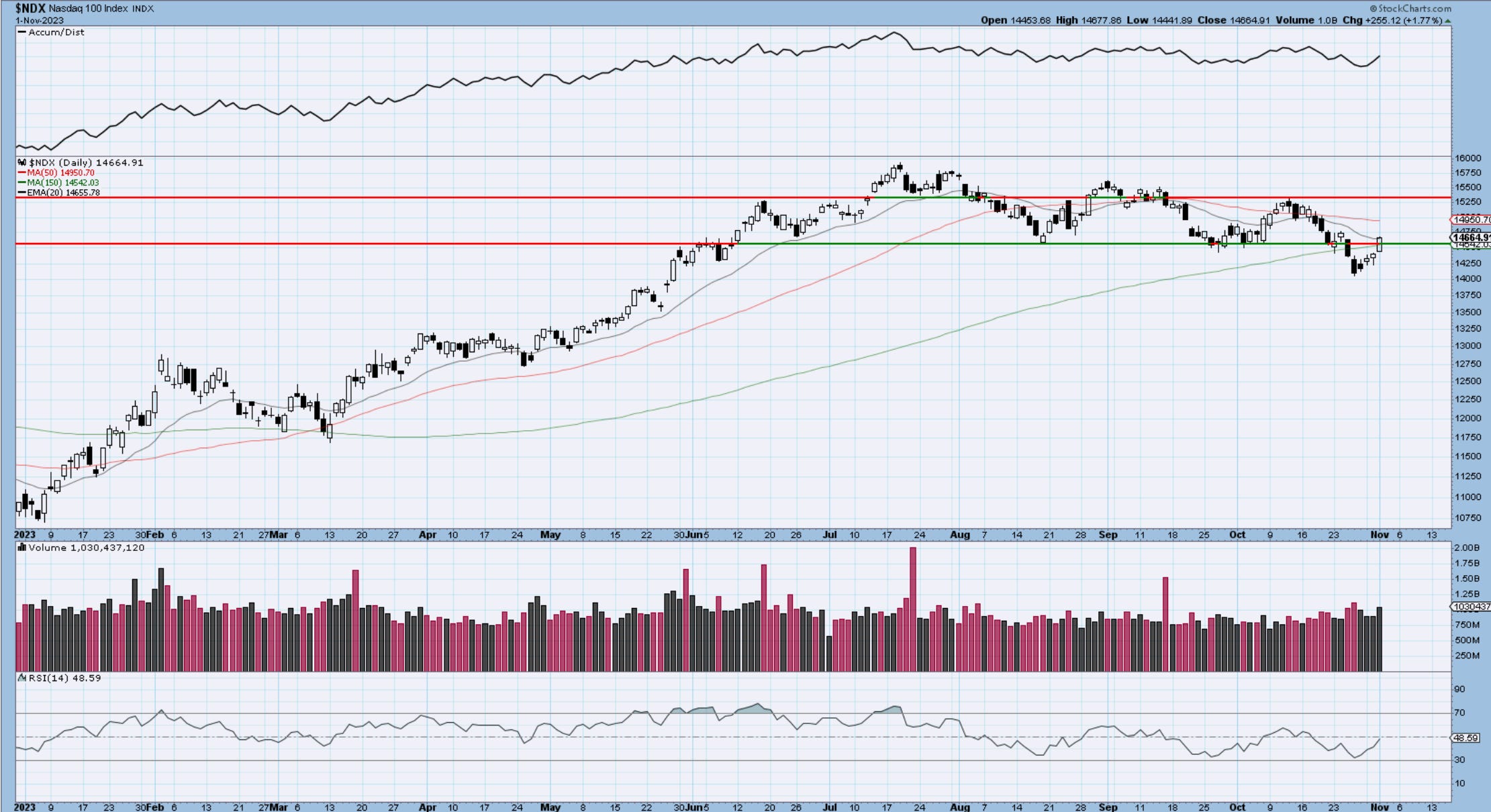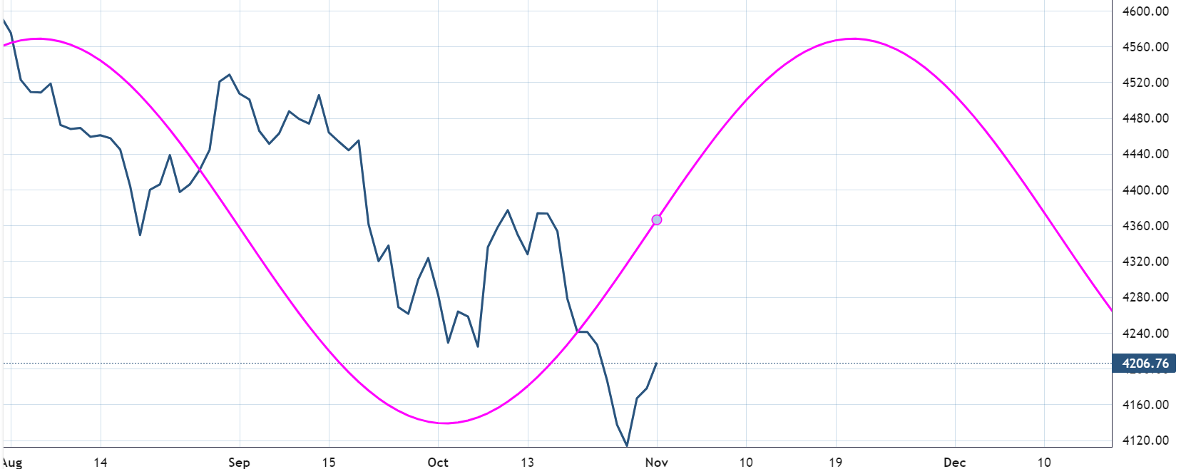 Three consecutive days of bullish price action in the equities. This comes on the hills of a three prior months decline with over-elevated fears of breakdowns on Friday, Oct 27th. The quick trip below 4200 and into 4100 was reversed at the start of the most bullish period of the year historically. Today’s Fed meeting accelerated the buying after a midday selloff prior to and at times during the press conference. Apparently, the market took Powell’s comments between the lines that the rate hiking cycle is complete and will eventually be followed by cuts if there is an economic slowdown next year. I can’t speak to how accurate that is, but what I can speak to is the fact that the signs I have been pointing to for several days now have proven to be important in terms of breadth, volatility, counts, sentiment, and seasonality.