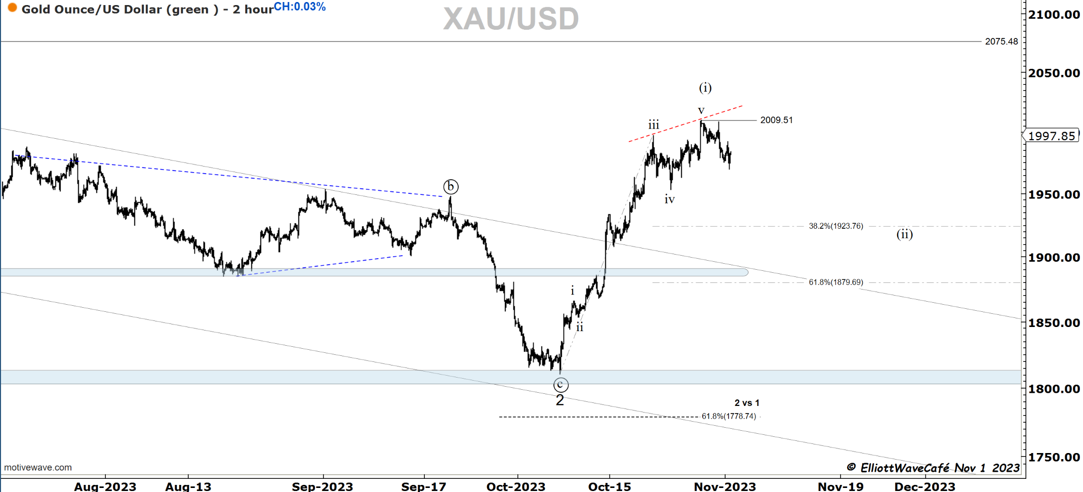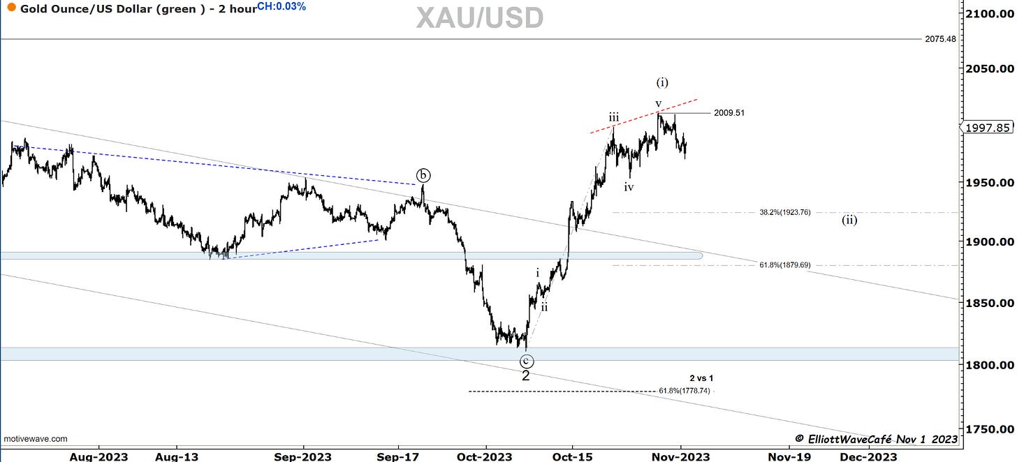 Gold is trying to rally but the rate of ascent is slowing. I can see a possible 5-wave move with divergence in RSI. Let me just say that being long here is playing with a bit of fire. Once a wave (ii) pullback unfolds the odds will be back in bullish favor.