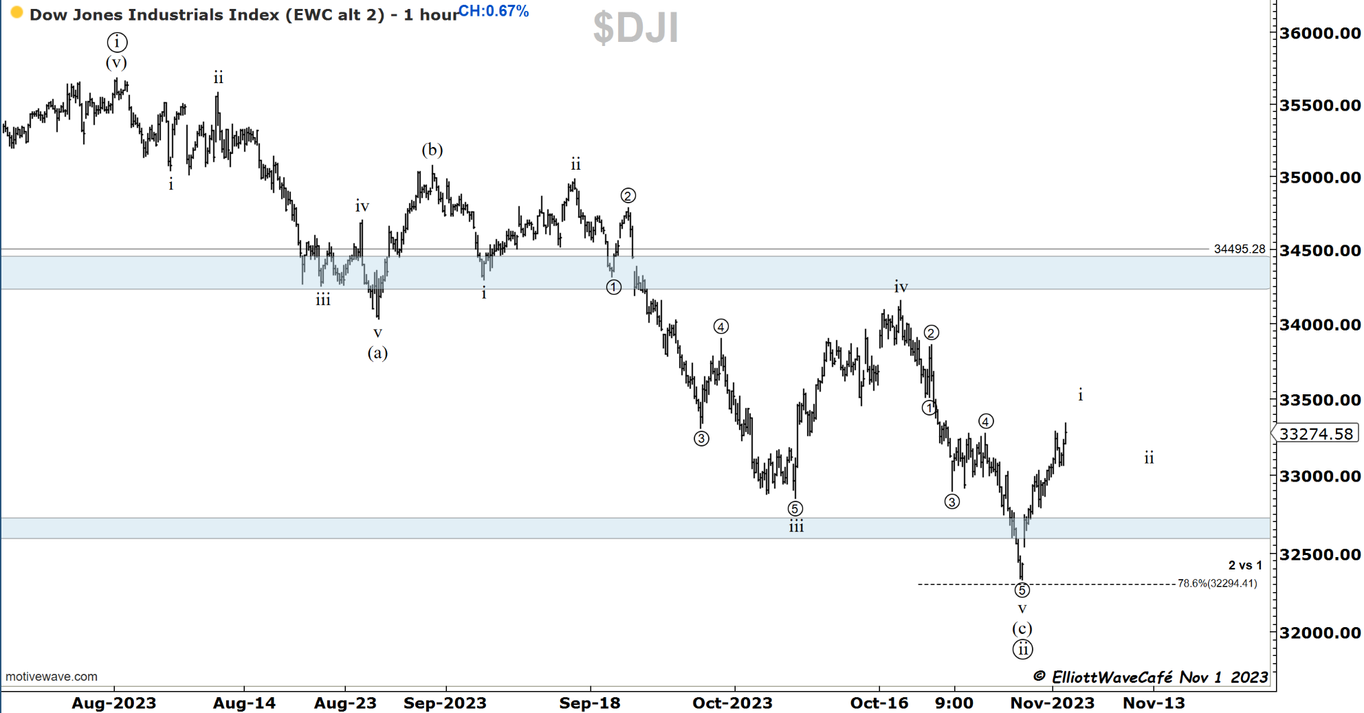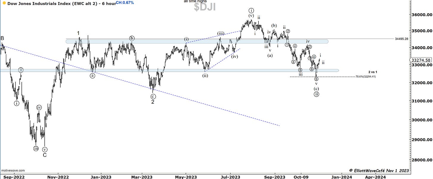 I see 5 waves clear as day forming on the 1h chart. It gives me confidence that we’re on the right track with the count and expecting further gains upon necessary corrections. Our 3x ETF’s exposure to DOW is well overweight this week.