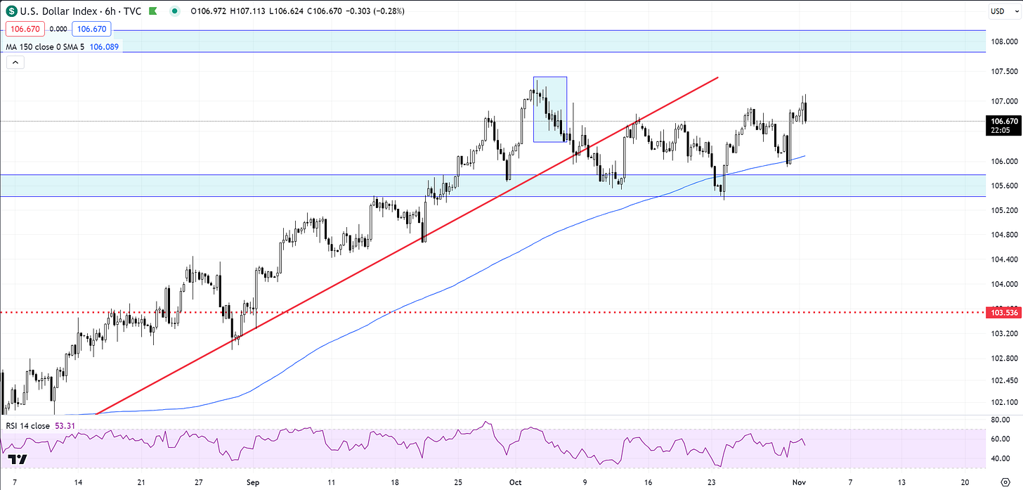 This tricky currency market is not giving up just yet, if anything it had another attempt at breaking the prior highs. Unsuccessful at the moment, but something that keeps me in check when I analyze risk. Any strong break higher in the dollar won’t be seen well by equity traders. We’re waiting for a break of 105.50 to give a further tailwind to markets.