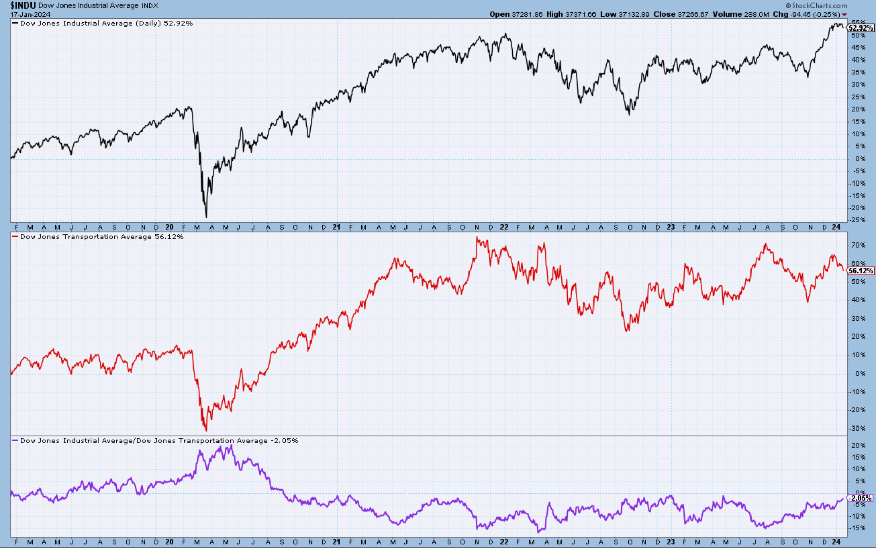Notice the heavy divergence between the Industrials and Transports. Good old Dow Theory. We have a problem. What type of signals have transports been sending by not being able to stage advances? And I don’t think it’s only Boeing.