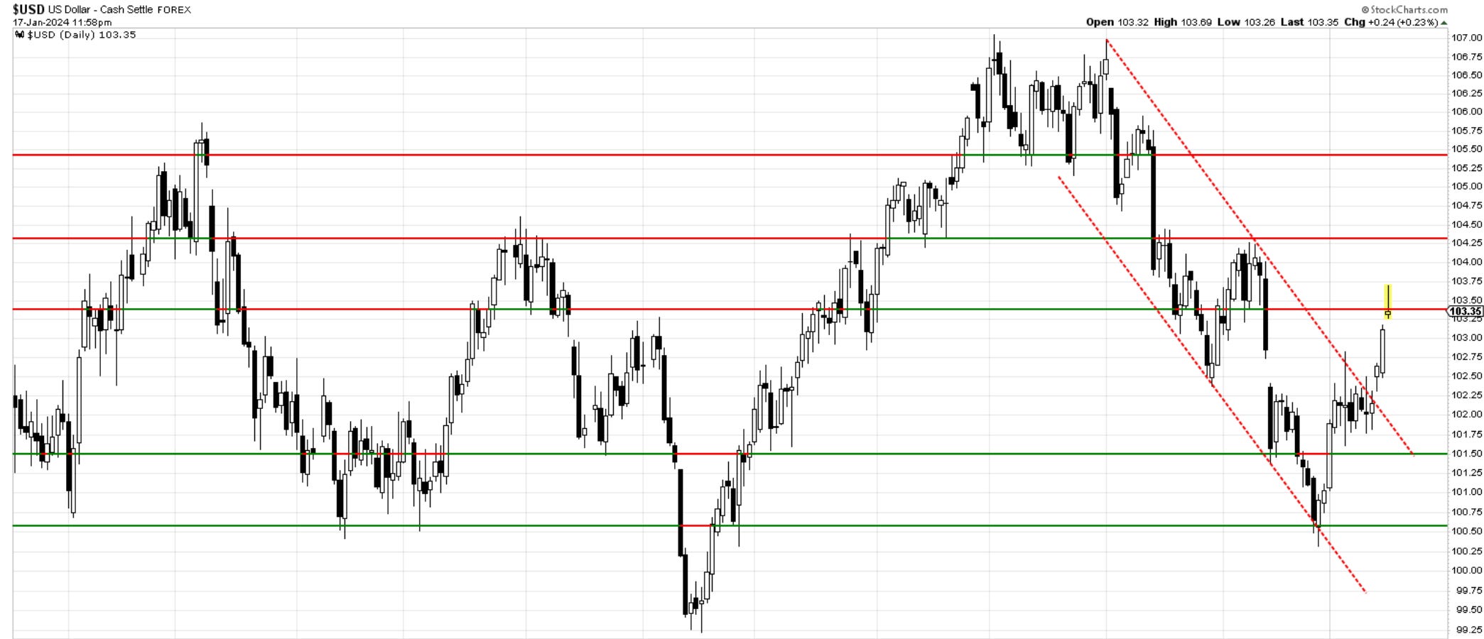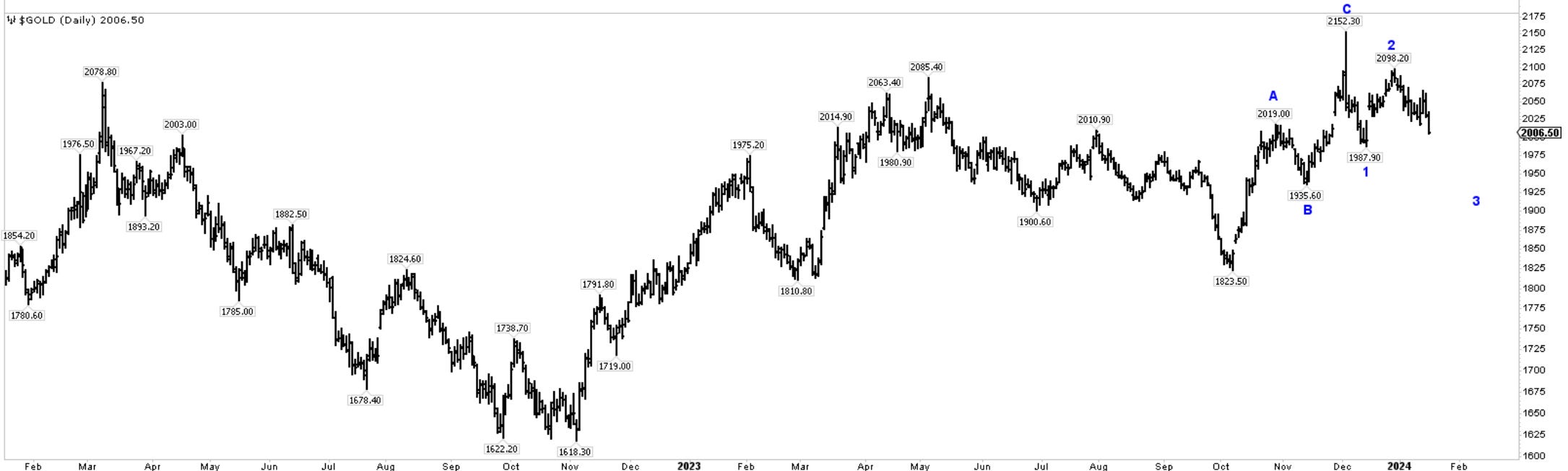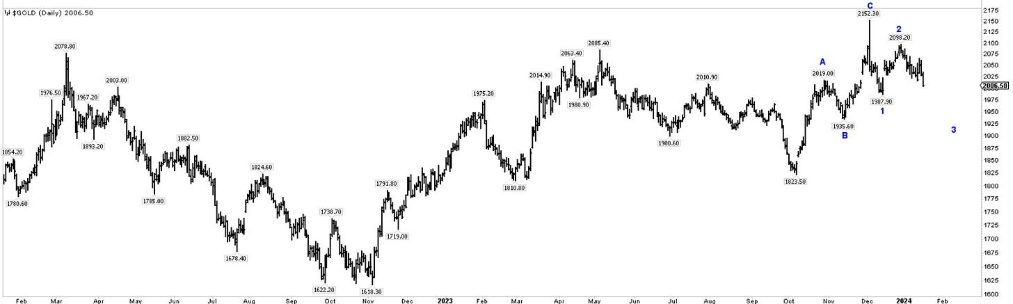 Gold has lost -1.17% today, getting closer yet to that prior swing low at 1987.90. A loss of that level will likely accelerate the downside. There was a premature, exciting move towards 2150 on FED cutting rates. I think we’re going through a period of repricing as those rate cuts are being pushed back. Plus, don’t forget money market funds yield nearly 5%, so holding a yellow metal with no yield does not make much sense for many.