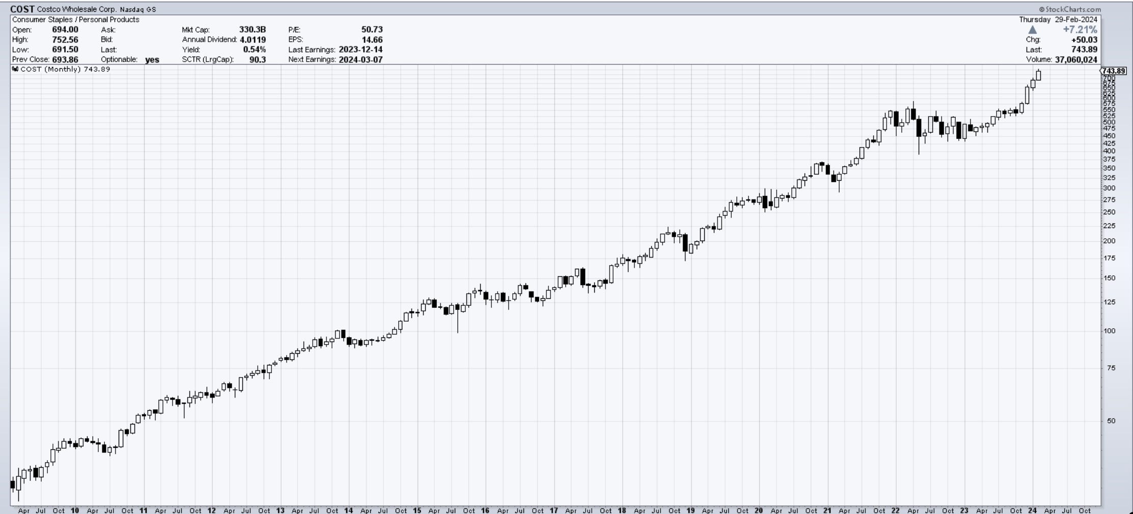 Chart of the Day COST - A simple business model that continues to work. Charge on memberships and sell items at cost. Everyone wins.