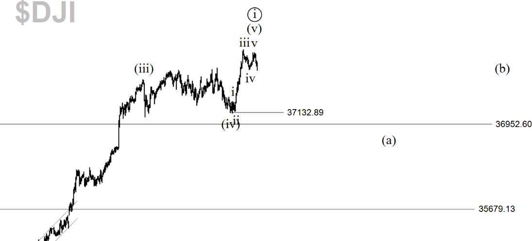 In the second picture, I think we got that small fifth-wave push. I continue to see Dow as having the cleanest and most convincing 5-wave structure of all indices. My confidence in the short positions is high. A break of 37,132 will only grow it.