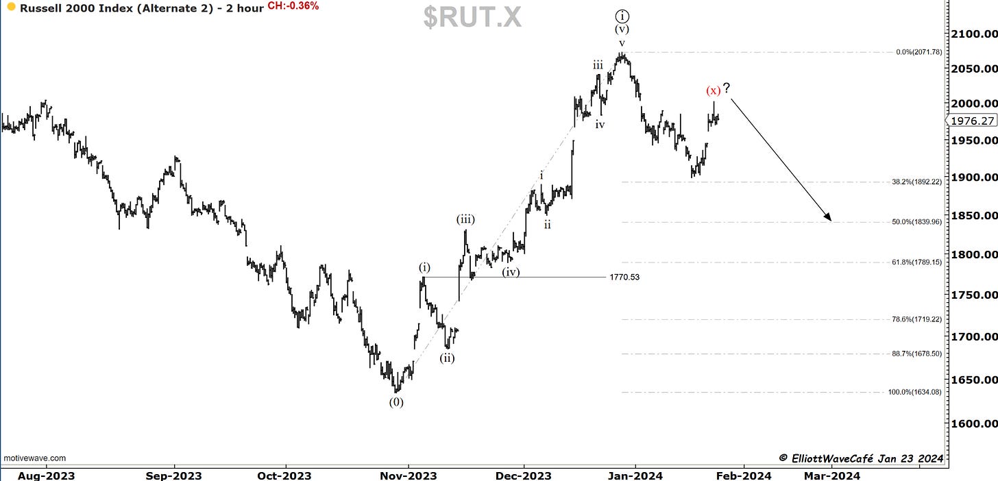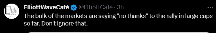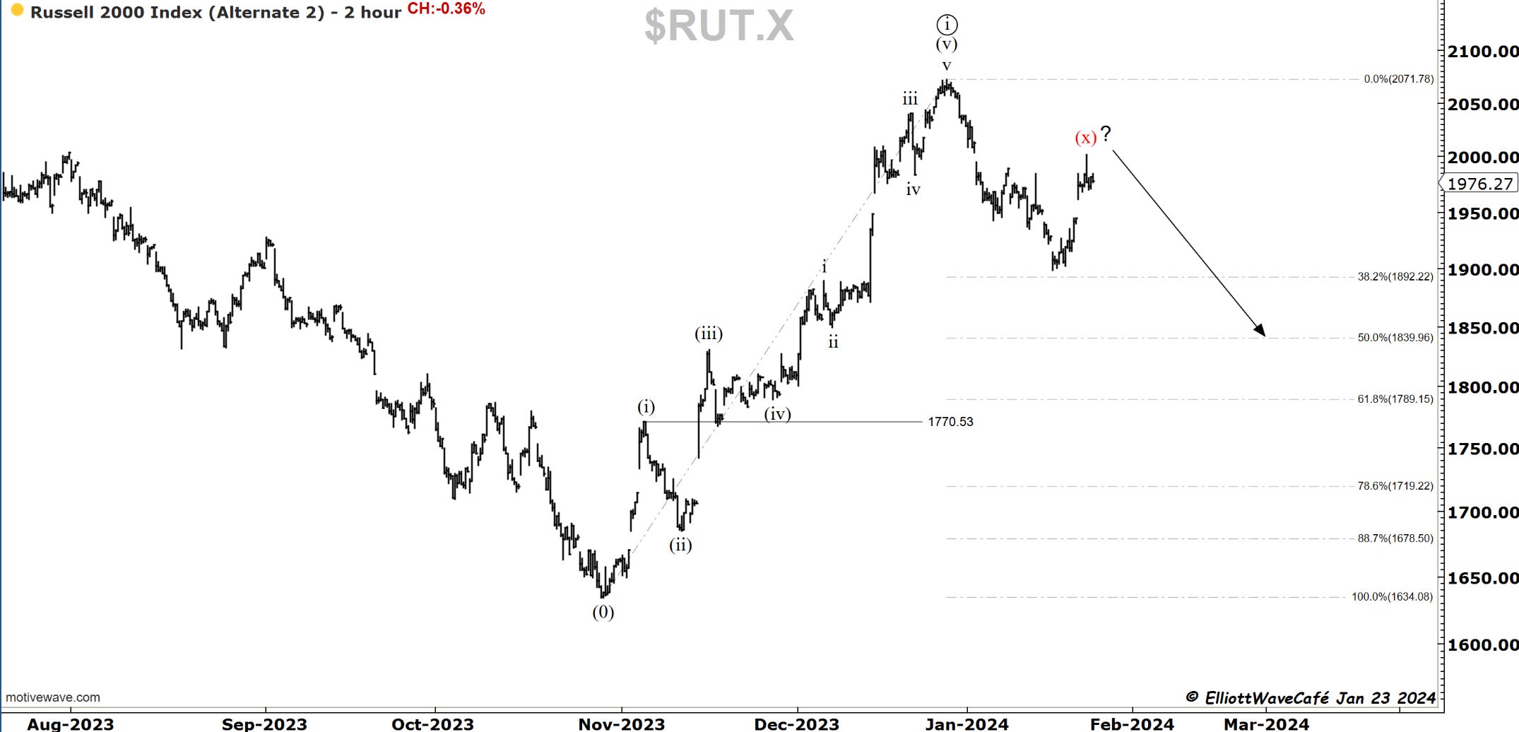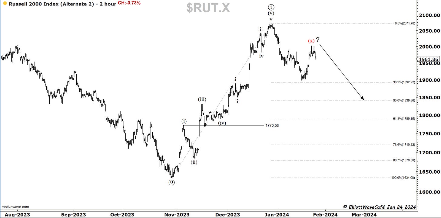 Yesterday, I presented the X-wave idea. Today, this market continued to act weak, and we ended up about 75bps lower. It's still a timid move that’s not very convincing yet, but if we lose 1930, I would be willing to say we’re onto something. Small caps were just not able to get off the ground. It probably has to do something with a rising yield environment.
