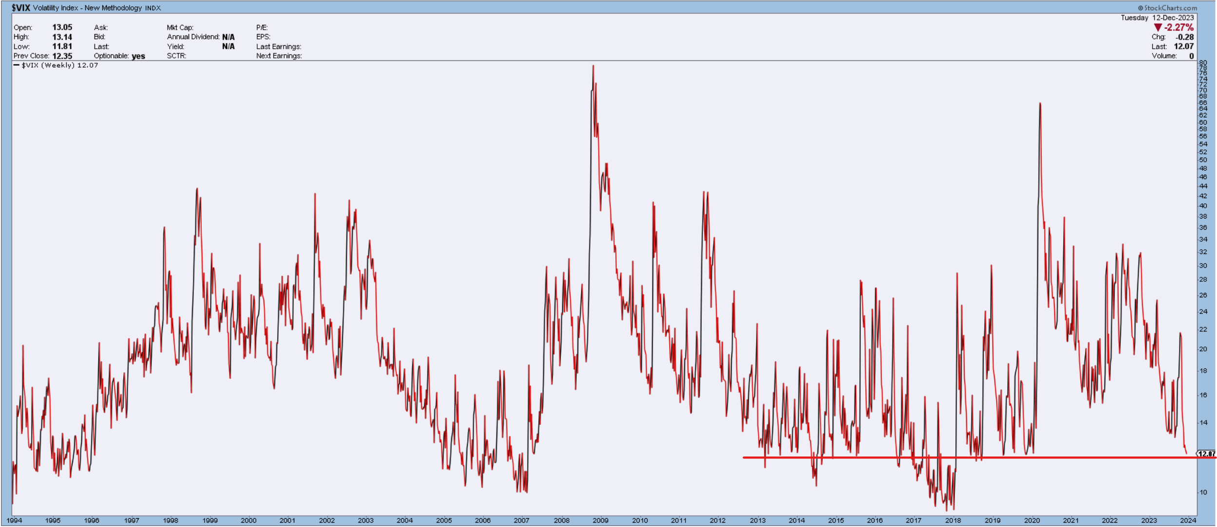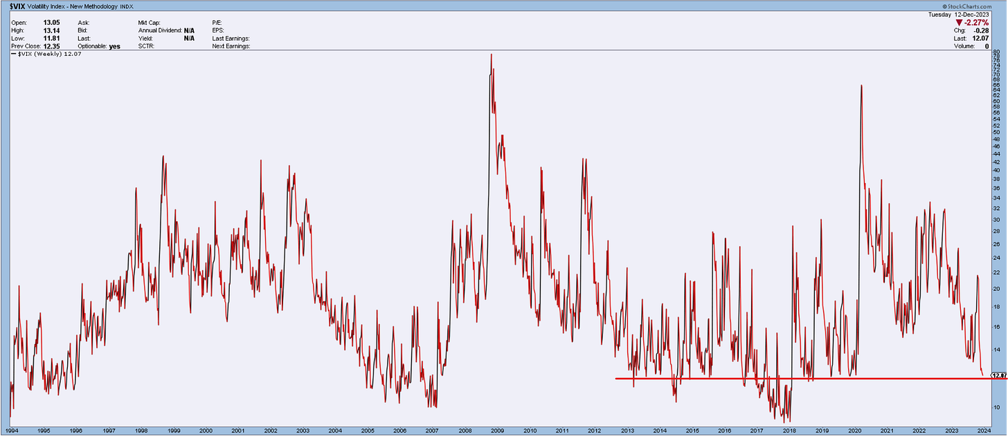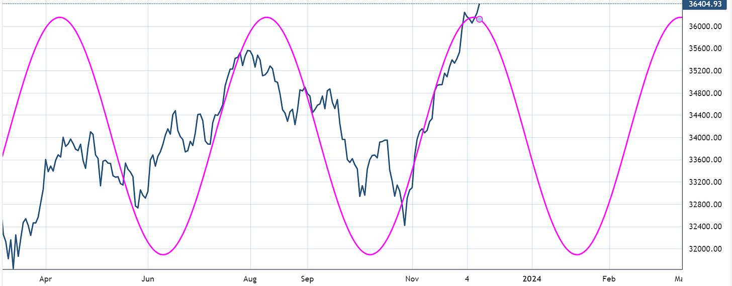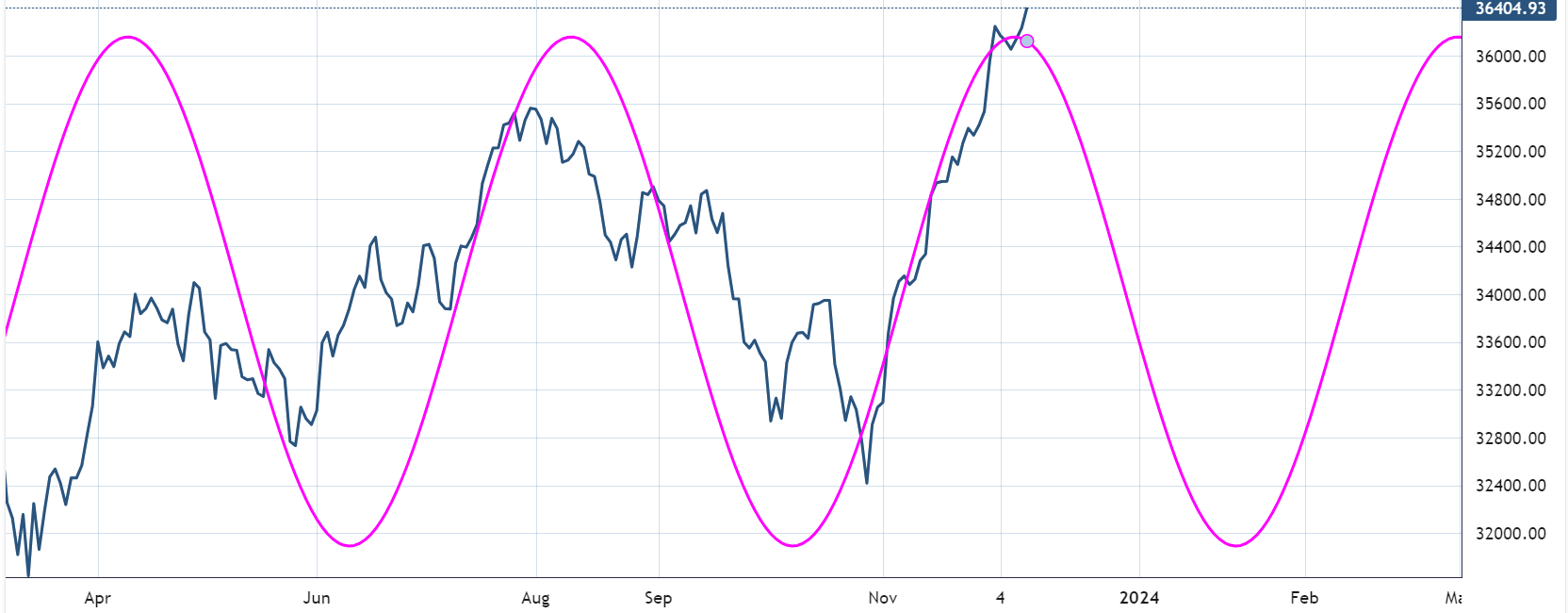 It was another decent day for the index following a CPI number that provided no surprise. We continue climbing in a 5th wave with a VIX dropping at 12. The charts below show the support line from 2013 and the upcoming rising active cycle from an 85-day period.