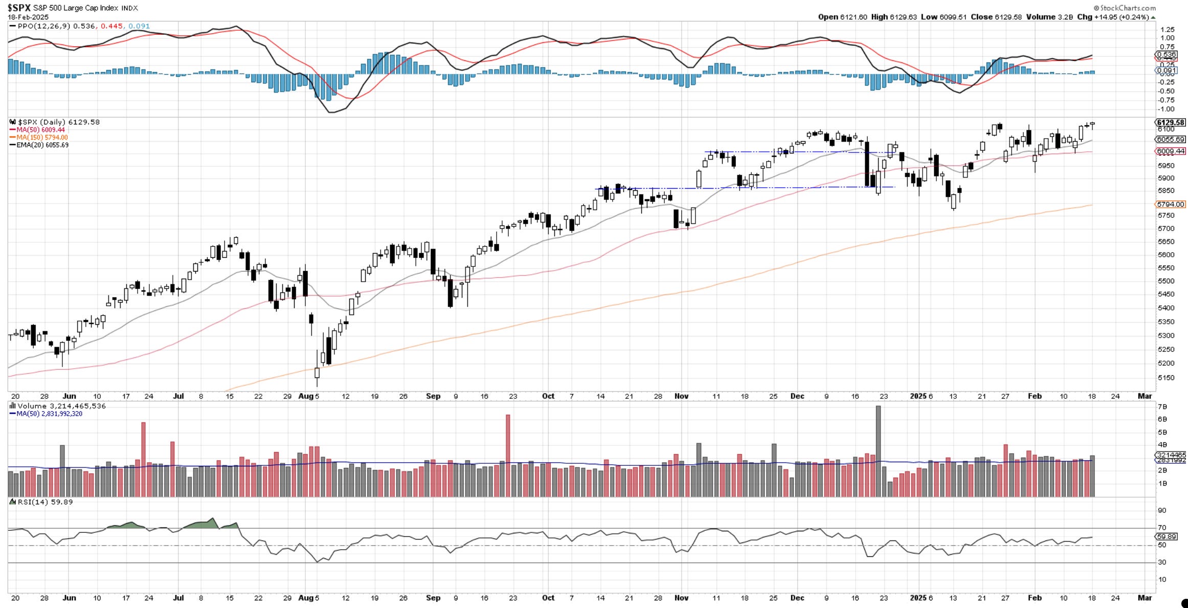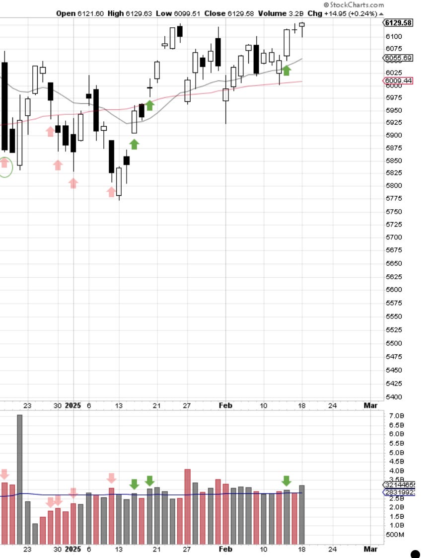 The S&P has managed to stage a close at new all-time highs today at 6129.58. This is in line with our expectations from last week when the market failed to break and close below its 50day moving average. On Feb 13th we also got a strong buying day on good volume. So far, the market is progressing as expected without doing anything wrong. Based on this, I have to keep the long exposure elevated and try to swing in and out of stocks that act well, create breaks, and have solid fundamentals.