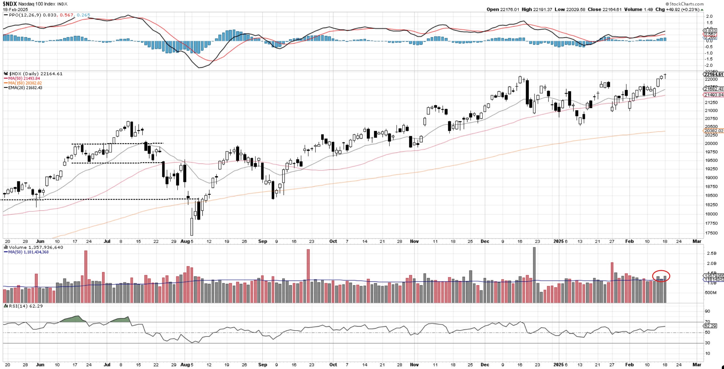 A break back below that Feb 13th low, would be a major alarm signal to reduce exposure and play defense.
