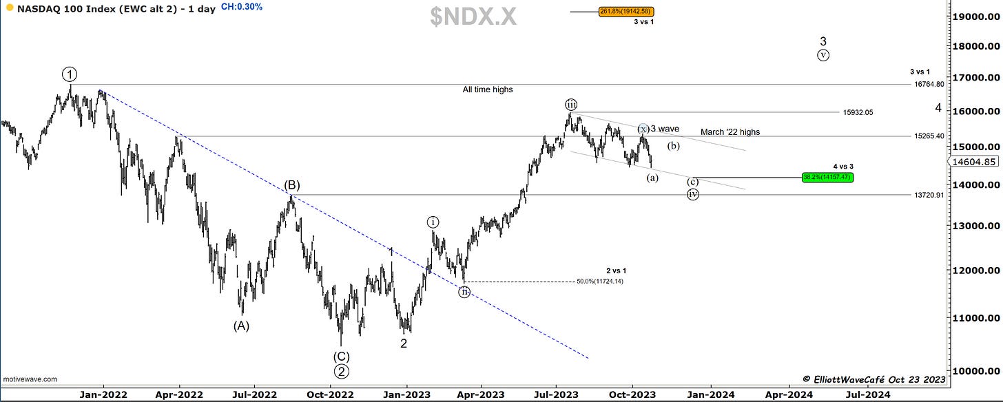 Nasdaq was actually positive today after the initial 15 min drop. Here, the count is cleaner and has room to merge more complex.