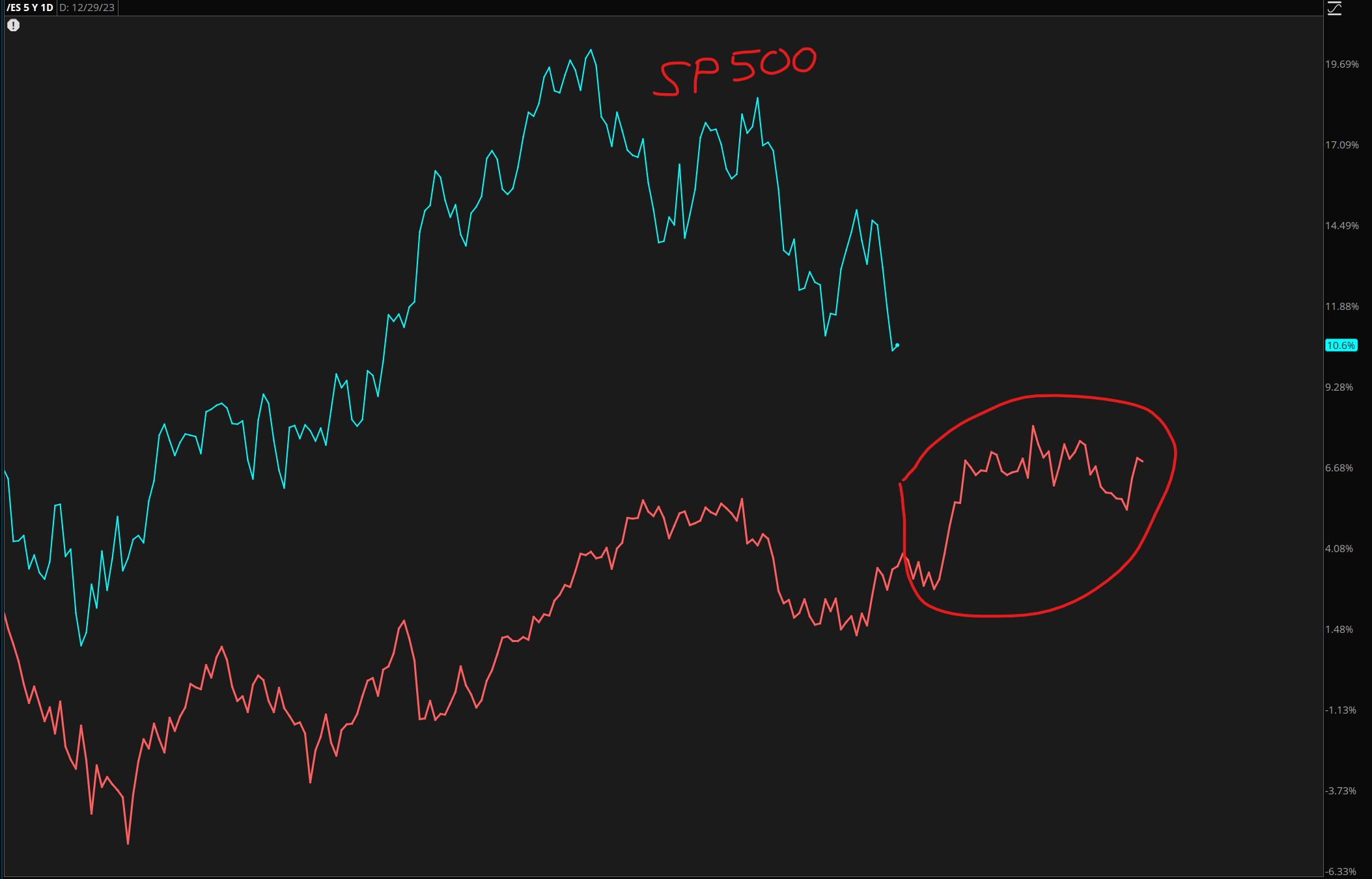 The dollar never bought the equity selloff and broke the correlation on risk quite a few days prior. It’s not to say that it cannot revert from here, but the way it’s been acting is not really suggestive of that. The first risk is an ABC decline, so extending past 104 lower would indicate impulse in my view. A weak dollar should be positive for risk assets, it’s just a matter of time to line them up.